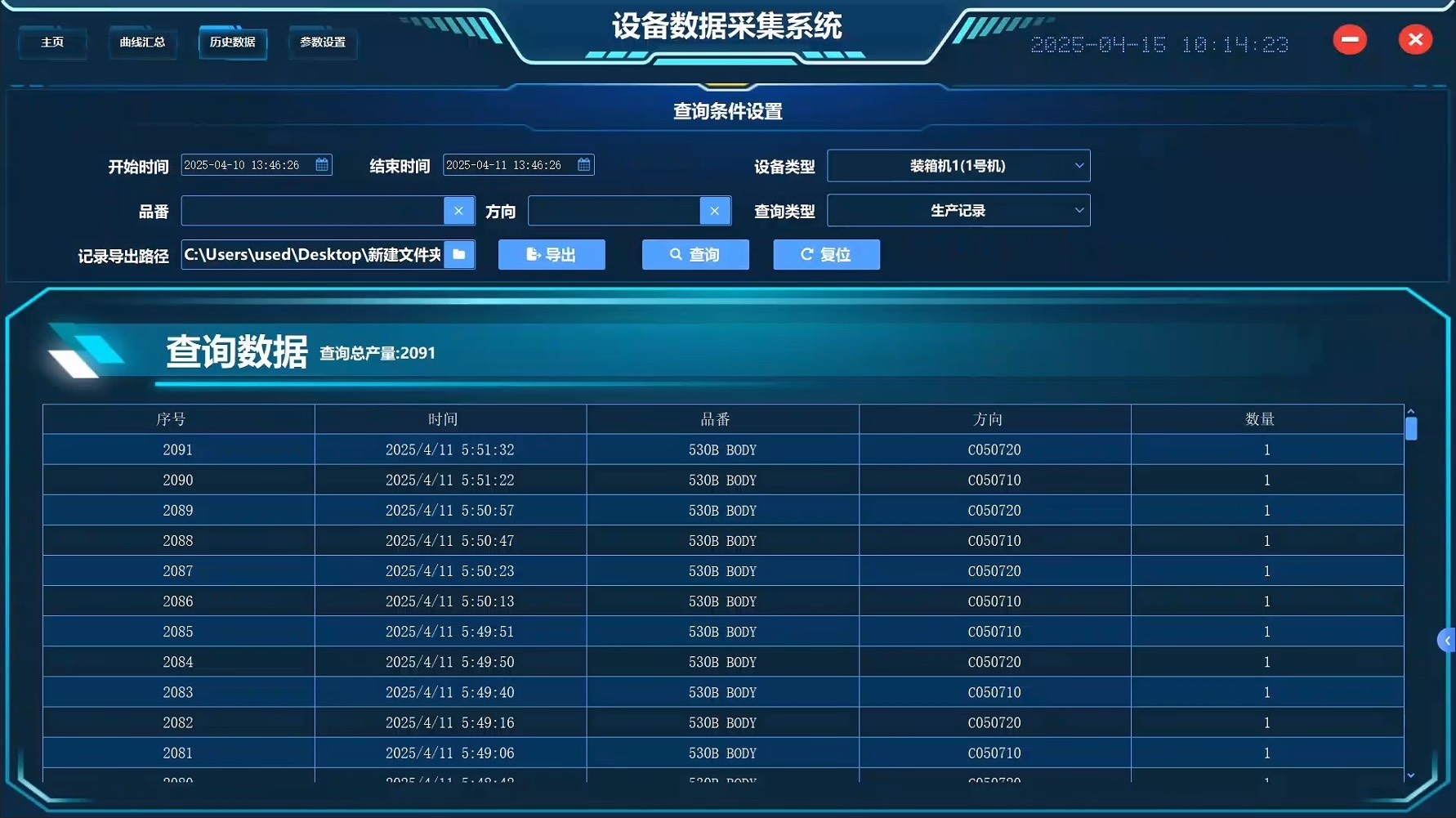 产量数据实时追踪 + 曲线图展示:实时采集产量信息,并通过趋势曲线直观呈现历史变化。