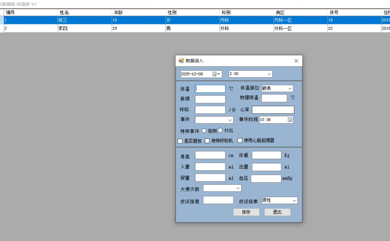本系统专为医院临床护理设计,全面支持内科与外科病区的病人体温记录需求,实现对住院患者生命体征的规范化、电子化管理。