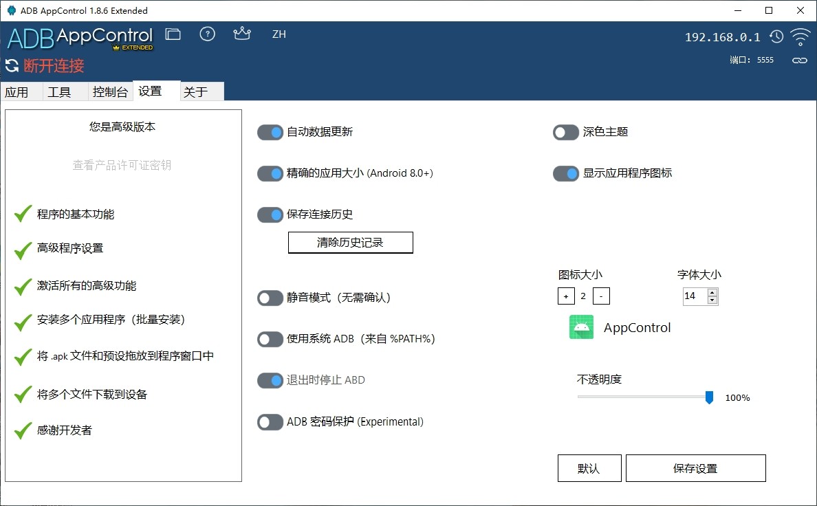 现推出ADB AppControl高级用户版本,所有高级功能均已完全解锁,用户可无障碍使用全部操作权限,提升安卓设备管理效率。