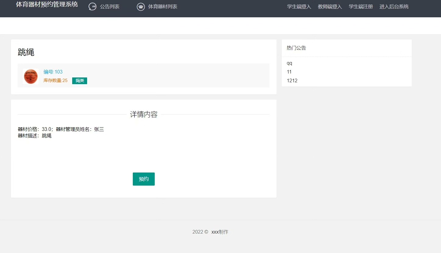 本系统是一款采用主流技术栈开发的体育器材管理平台,使用Java语言结合SSM(Spring + SpringMVC + MyBatis)框架实现,适用于学校或体育场馆对器材的信息化管理。