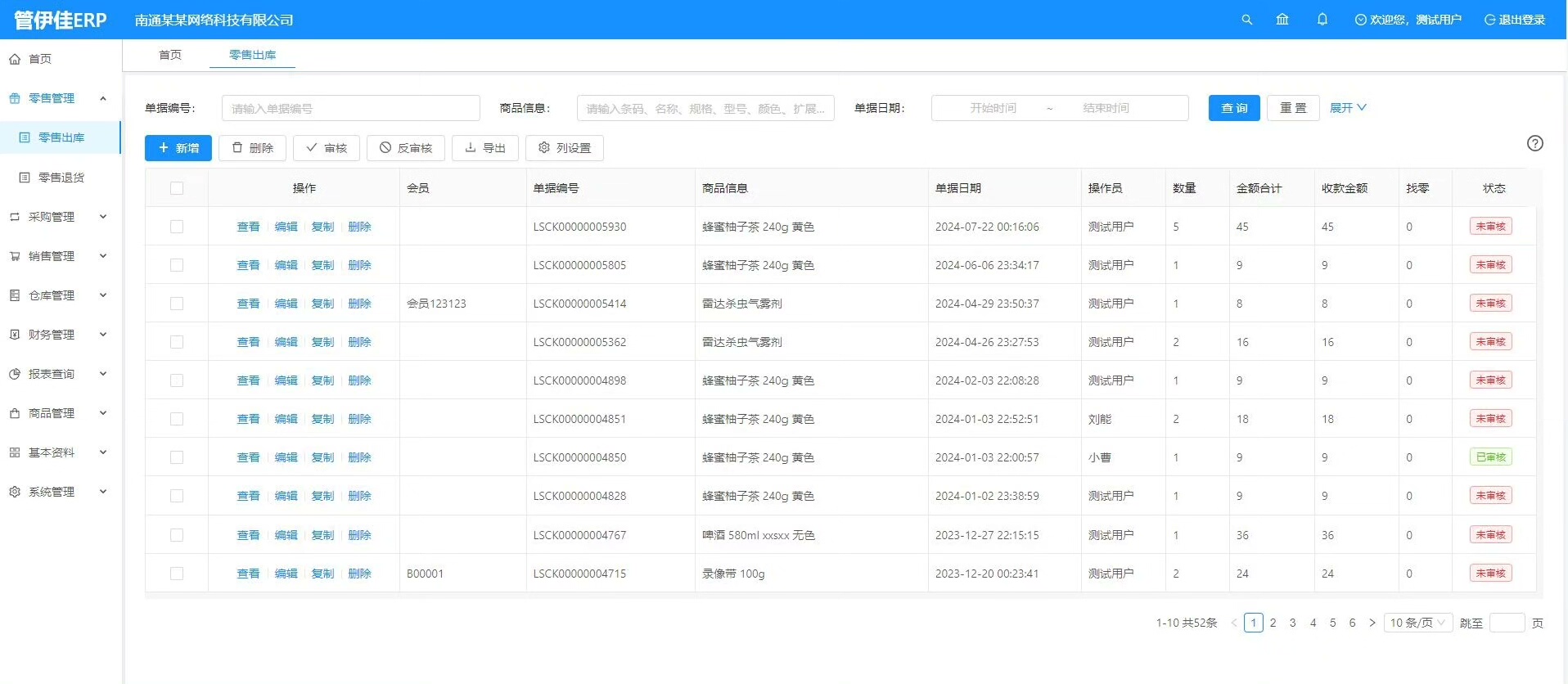 系统涵盖零售管理、采购管理、管理、仓库管理、管理及报表查询等关键模块,支持预处理、收入支出记录、库存调拨、商品组装拆卸、订单全流程跟踪等多种特色业务场景,满足企业日常经营中的多样化需求。