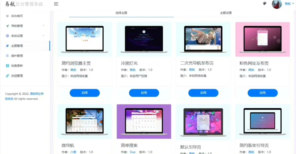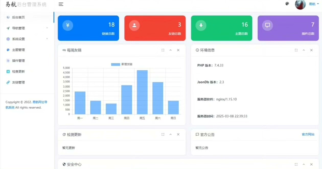 易航网址导航系统V完美去除限制,全面升级至光年最新v5模板架构,界面美观、操作流畅,提供更高效的后台管理体验,助力快速搭建专业导航网站。