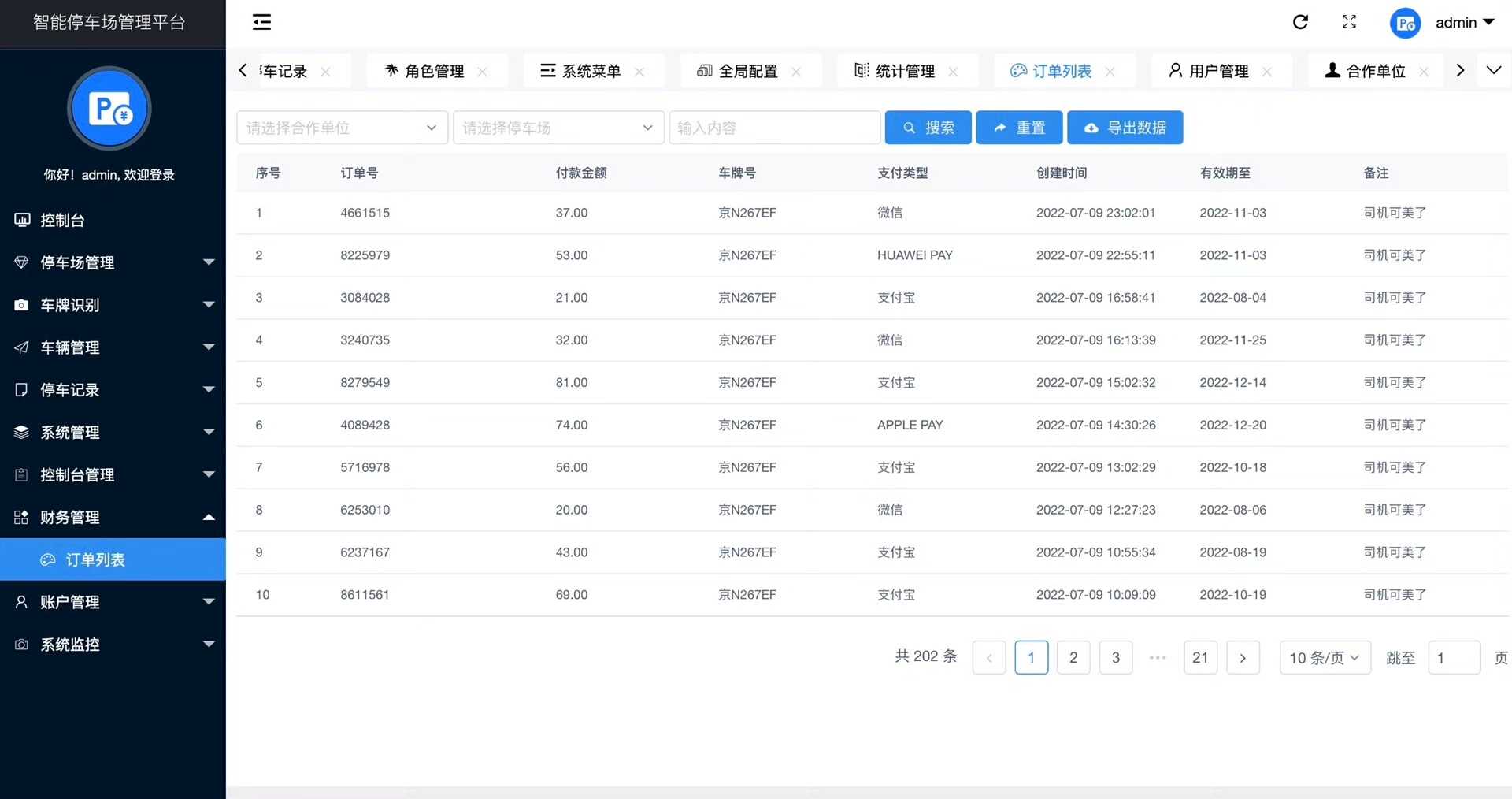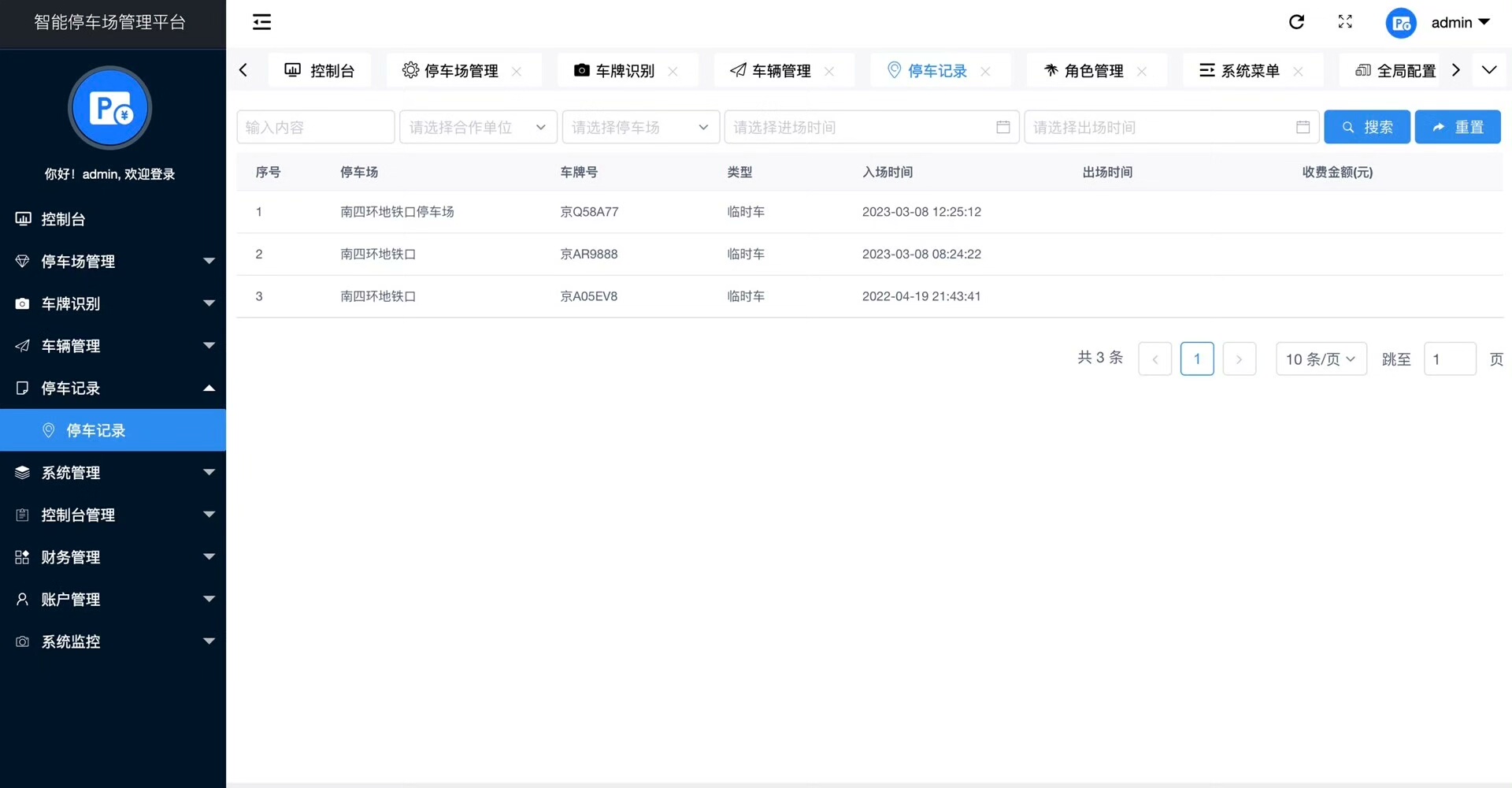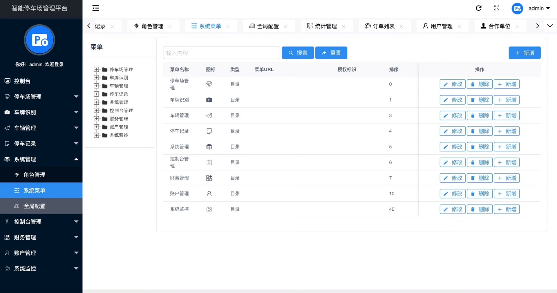 系统涵盖停车场管理、车辆信息维护、车牌自动识别、停车订单处理、停车记录查询、菜单权限配置以及角色权限控制等多个实用模块,适用于智慧园区、小区物业、停车场等场景。