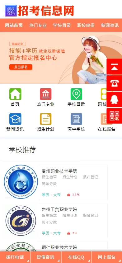 适用于各类招生场景,包括但不限于职业院校、技能培训学校、IT教育机构、考试认证中心等,满足招生宣传、在线报名、信息发布等核心需求。