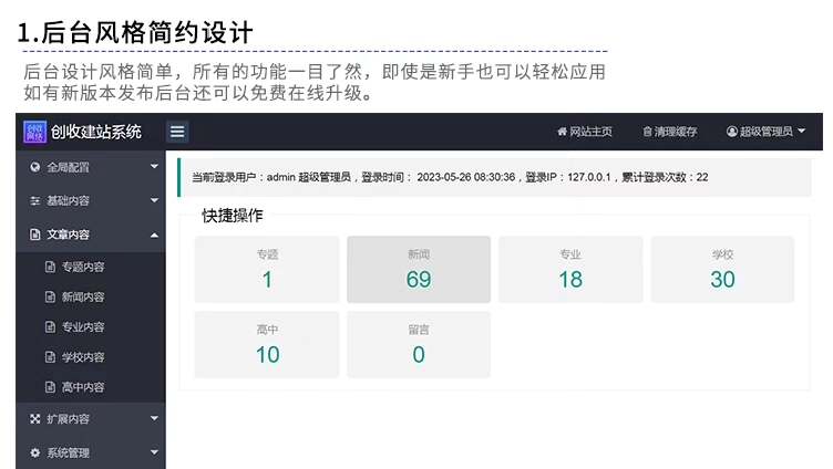 所有文字内容和图片均可在后台直接替换更新,高度自定义。
