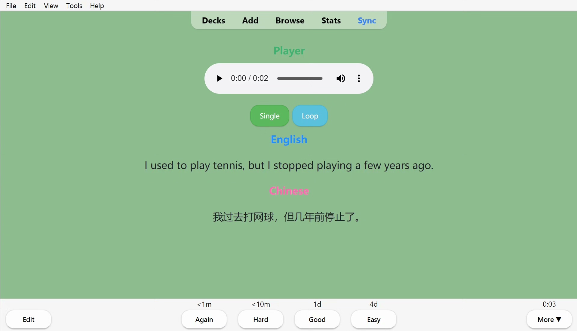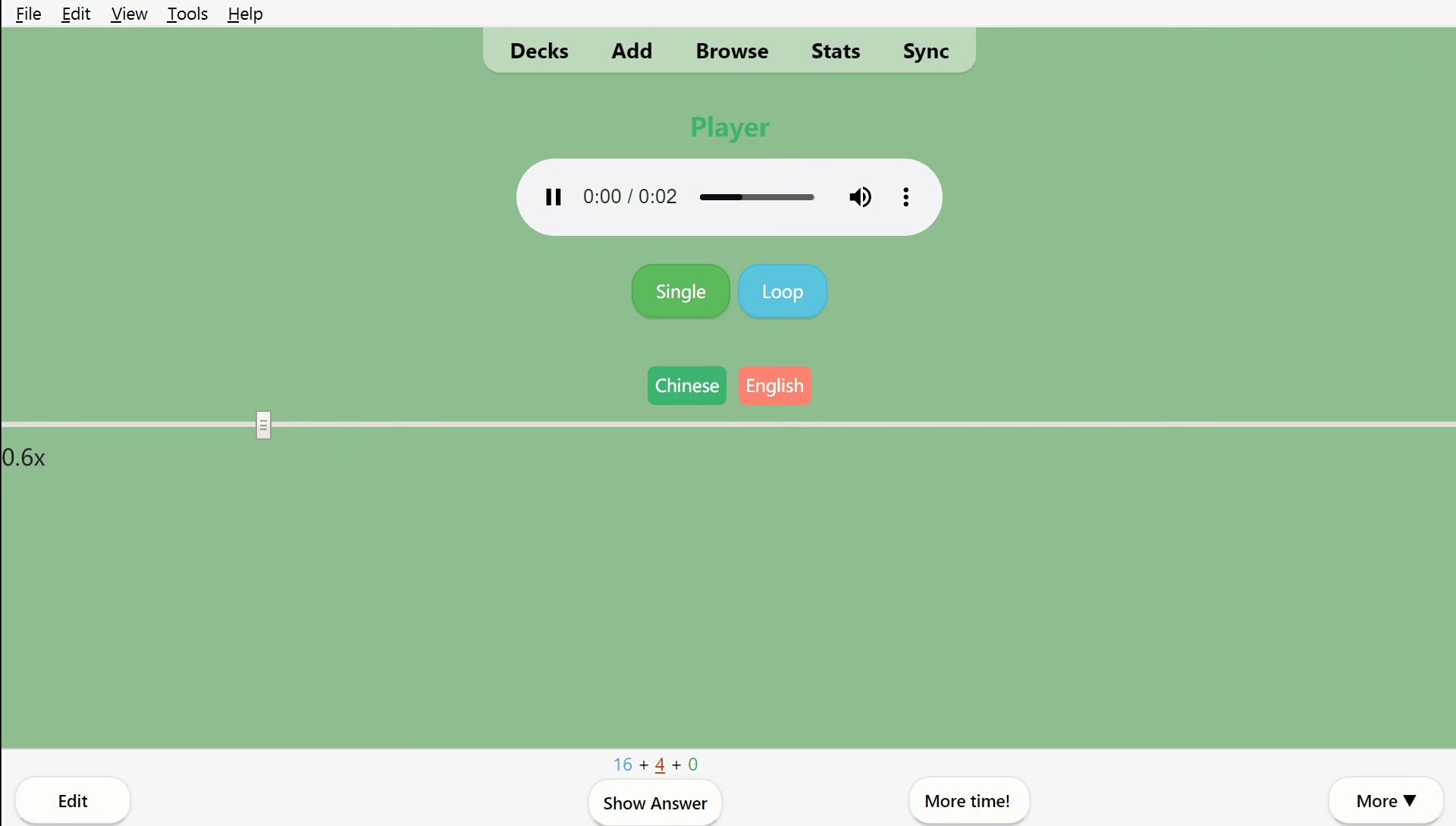 卡片内置音频自动播放功能,支持无限循环播放,帮助强化听力记忆。