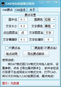 本软件由开发者独立研发,专为CAD平面图设计,支持批量导入坐标点并自动展点,同时具备一键快速连线功能,操作直观,大幅提升绘图效率。