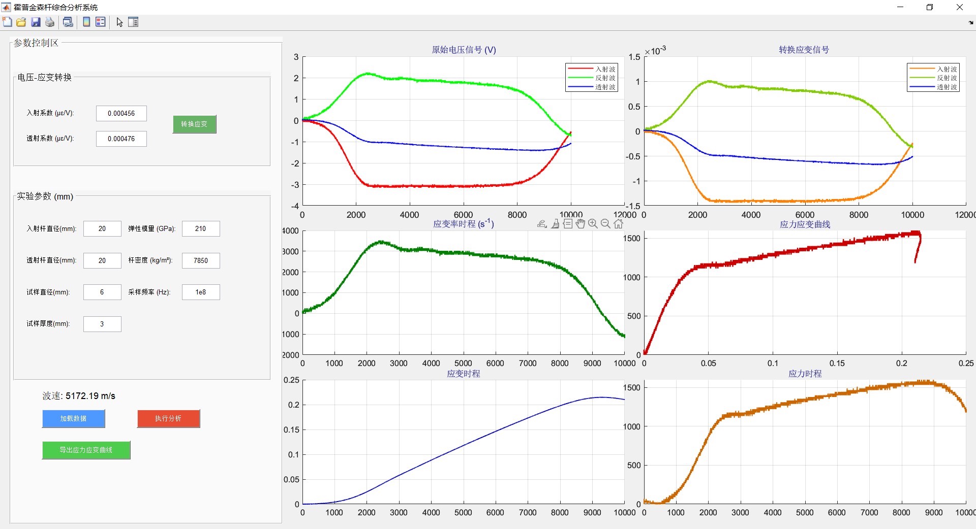 通过设定基础实验参数,如杆件尺寸、材料波速等,软件能够智能计算出试样的实时应变率、累计应变、应力值,并自动生成标准的应力-应变关系曲线,便于后续分析与报告撰写。