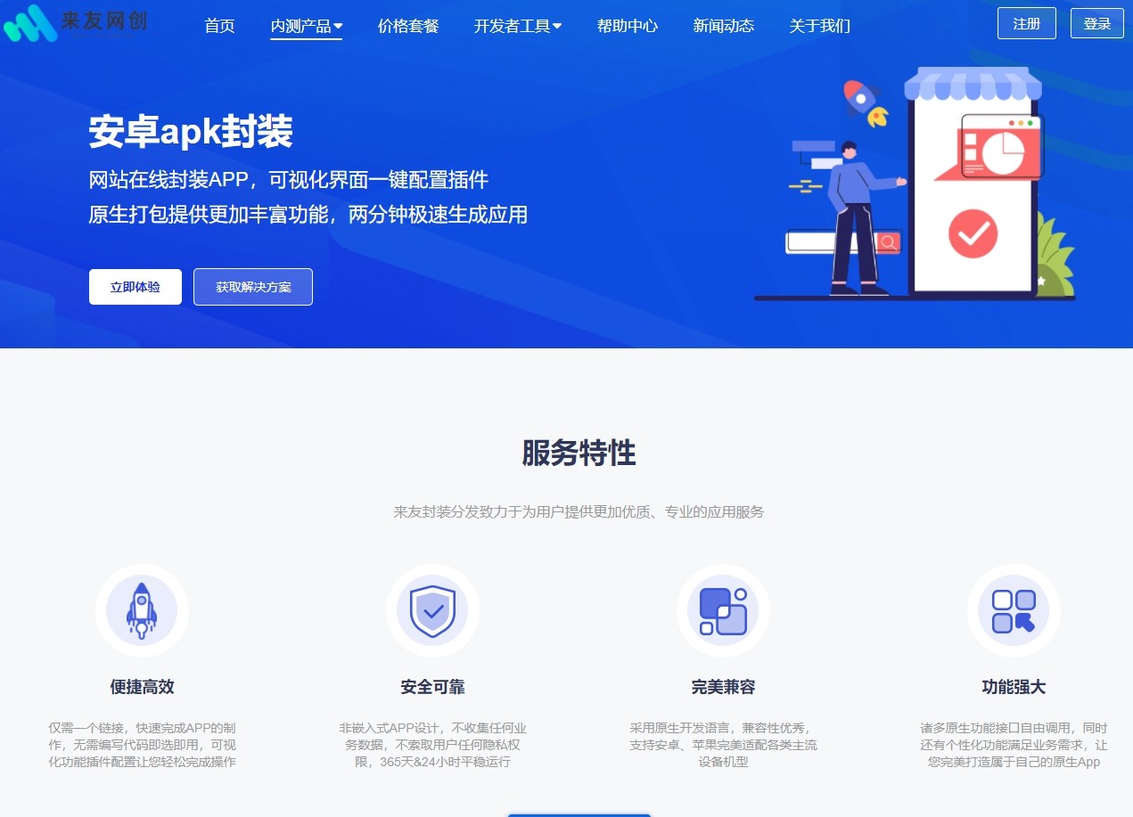 自带多种风格的应用分发下载页面,支持切换显示语言,满足不同地区和类型网站的发布需求。