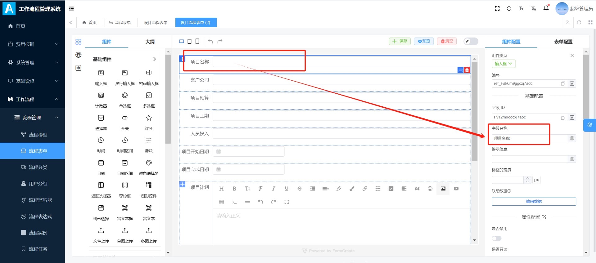 系统内置强大的流程设计器,支持拖拽式创建业务表单和审批流程。
