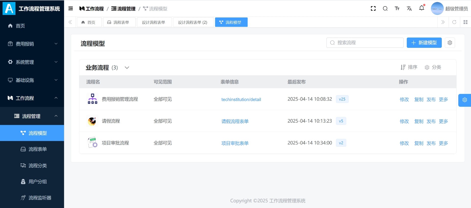 用户可零编码完成流程模型定义、字段设置、条件分支配置等操作,真正实现业务人员也能参与流程搭建。