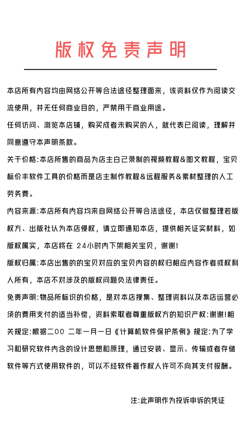 所有资源均为合法渠道获取,一经下单概不退换,请知悉。