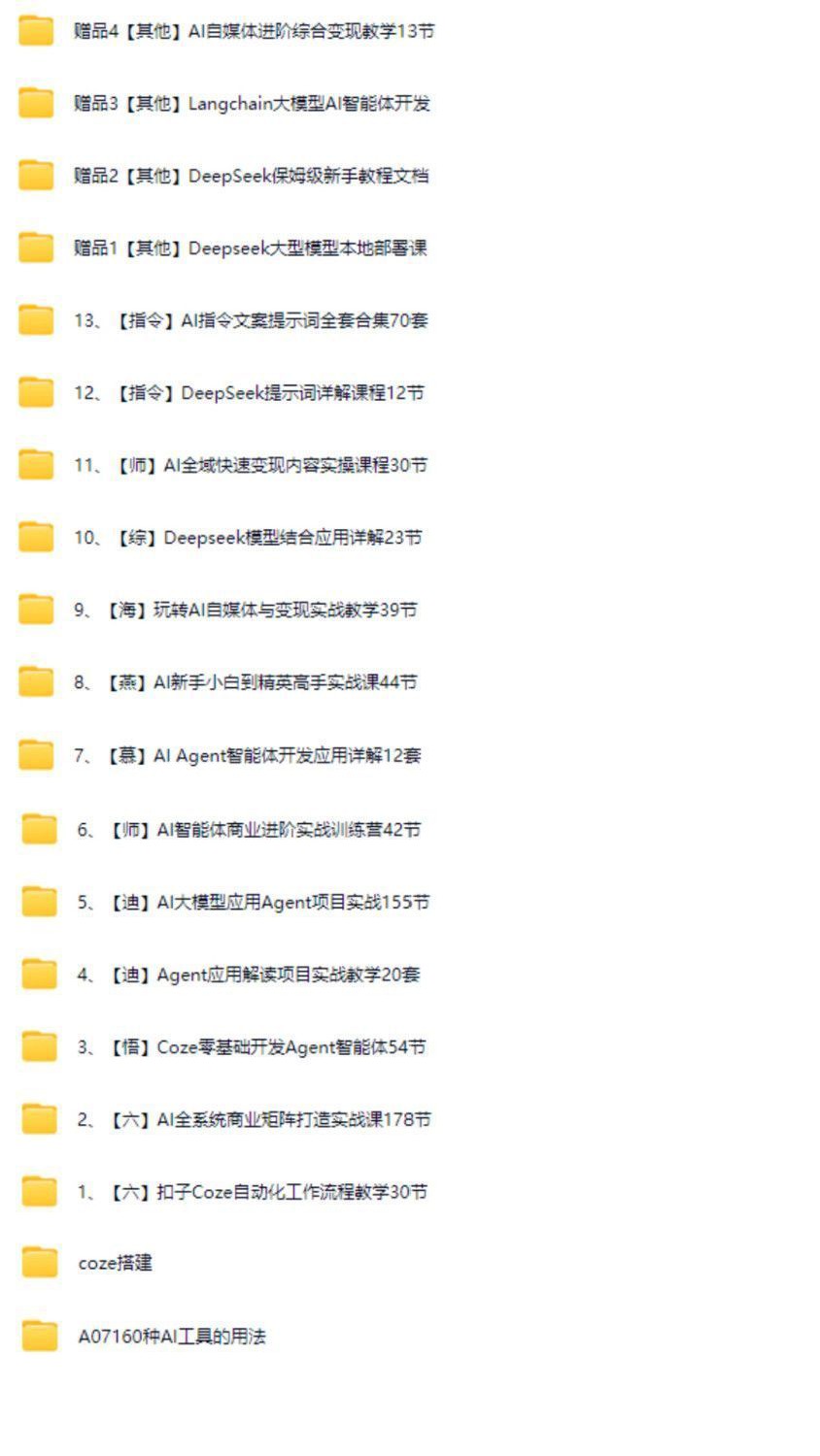本次合集重点整合了当前热门的AI开发工具与实践路径,包含Coze零基础智能体创建、自动化流程设计、AI Agent多场景应用及Deepseek深度求索模型实战等内容,形成完整学习闭环,帮助学员构建真正的AI应用能力。