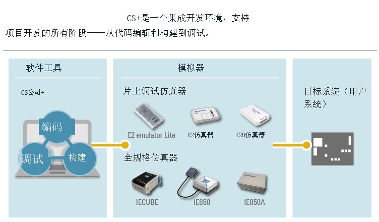 目标设备对应的编译器套件已整合在CS+中,省去额外配置步骤,开箱即用。