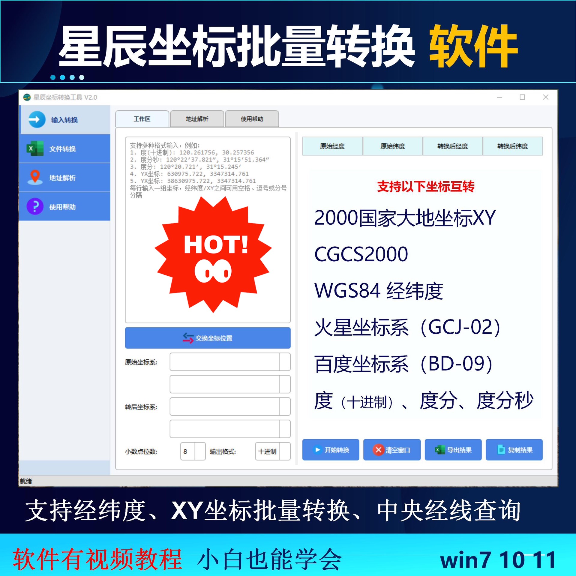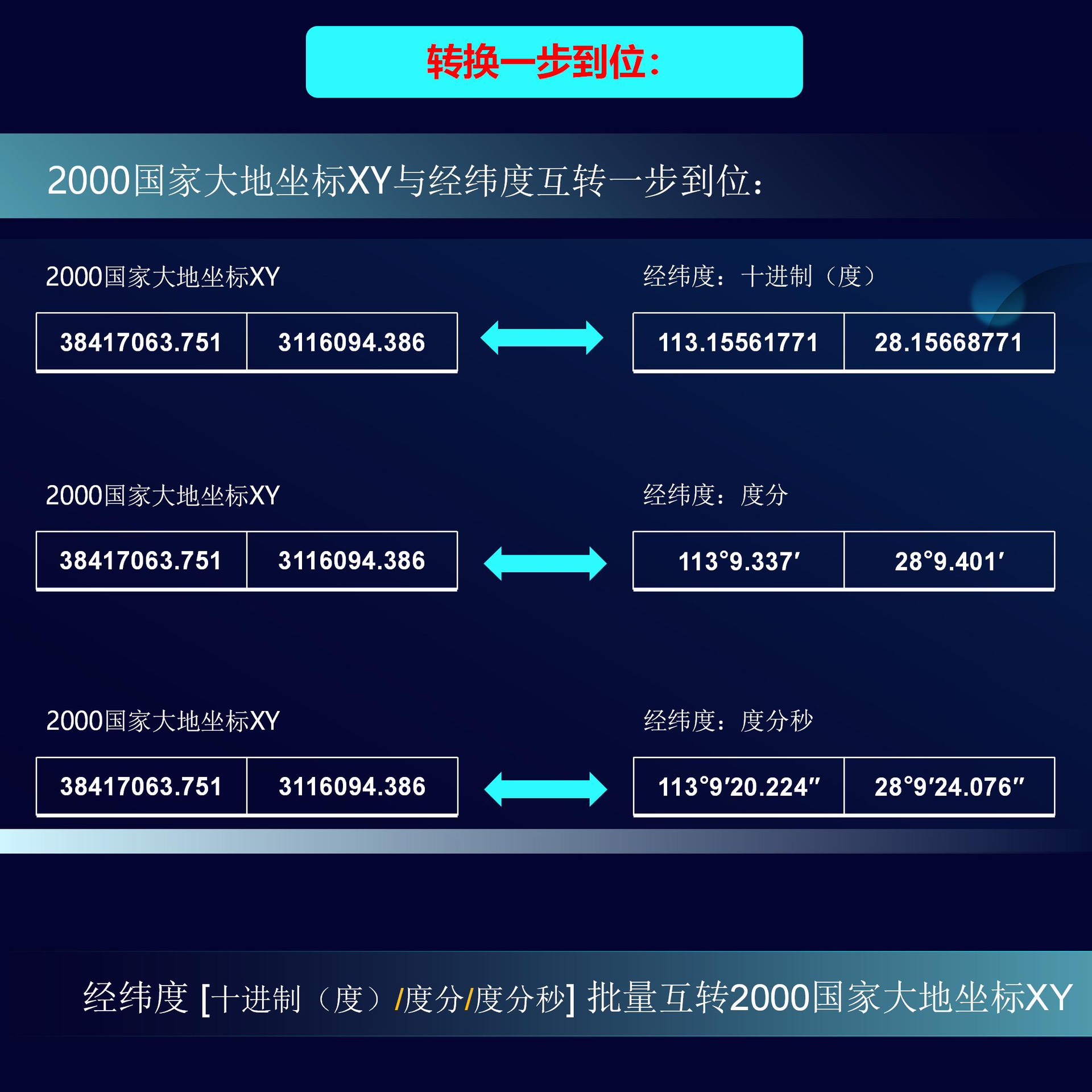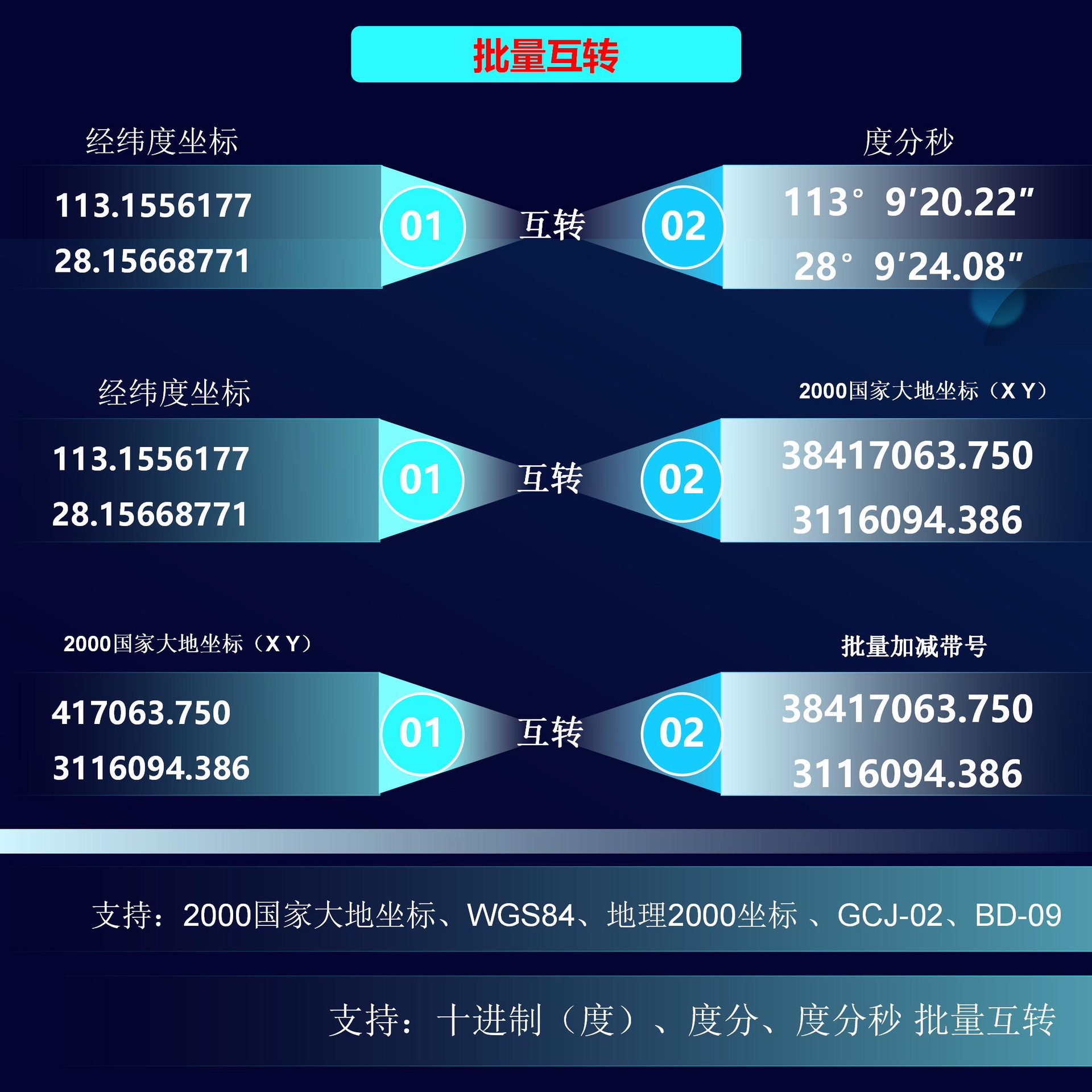 每一步转换均经过严格数学模型验证,确保结果准确无误,广泛应用于国土调查、城市规划、导航开发等领域。
