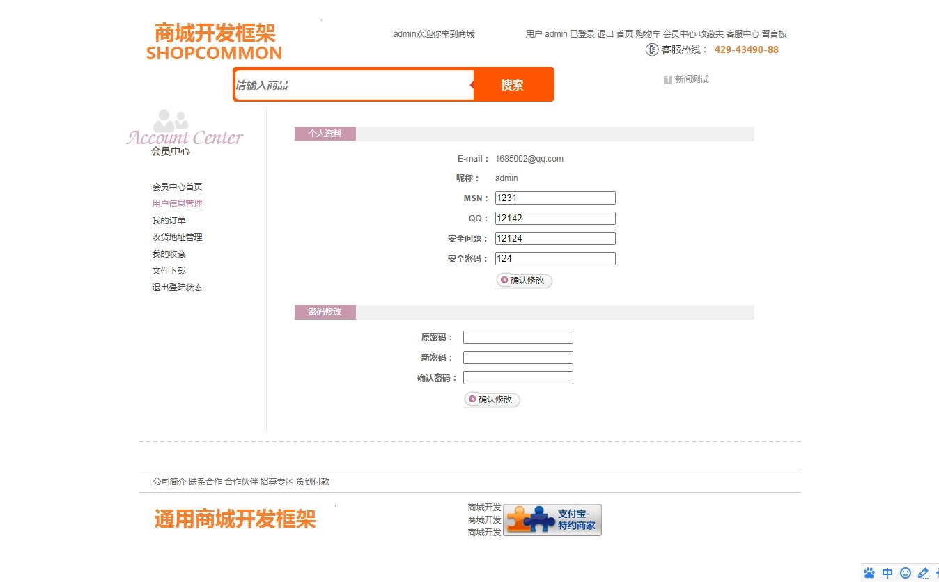 5. **会员中心**:统一管理收货地址、个人信息、历史订单、商品收藏及安全退出;