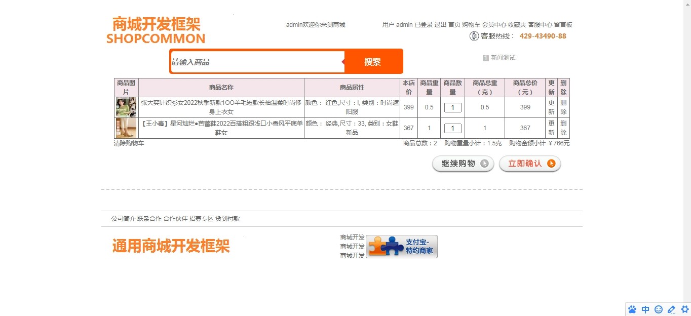 4. **车管理**:支持商品增删改查、数量调整与一键结算;