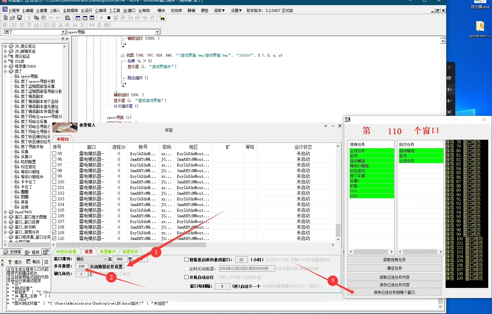 集成版大漠综合插件(DM.dll)、OpenCV图像匹配模块(支持模板匹配与特征点识别)、自研图像投影坐标映射引擎,确保在不同分辨率/缩放比设备上精准定位。