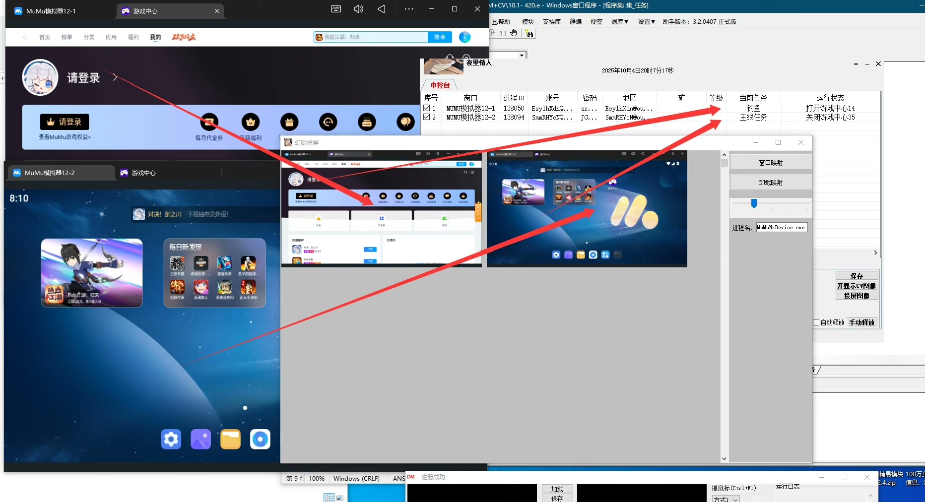 全面适配三大运行环境:Windows PC原生系统、雷电安卓模拟器(LDPlayer)、MuMu模拟器(NetEase MuMu),各环境均已通过基础通信与指令调度验证。