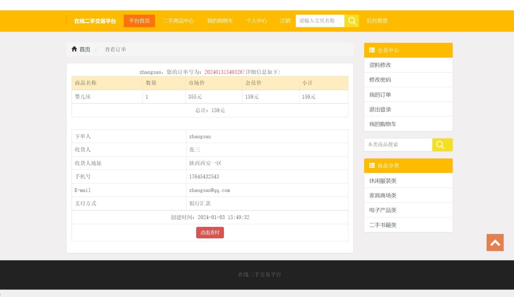 用户可通过手机号或邮箱完成注册与登录,并随时更新个人资料、收货地址等关键信息;支持多维度商品浏览(按分类、关键词、区间筛选)、查看高清详情页、发表真实评价;车支持多商品暂存与批量结算;后集成模拟支付流程,自动生成唯一订单编号并实时同步状态。