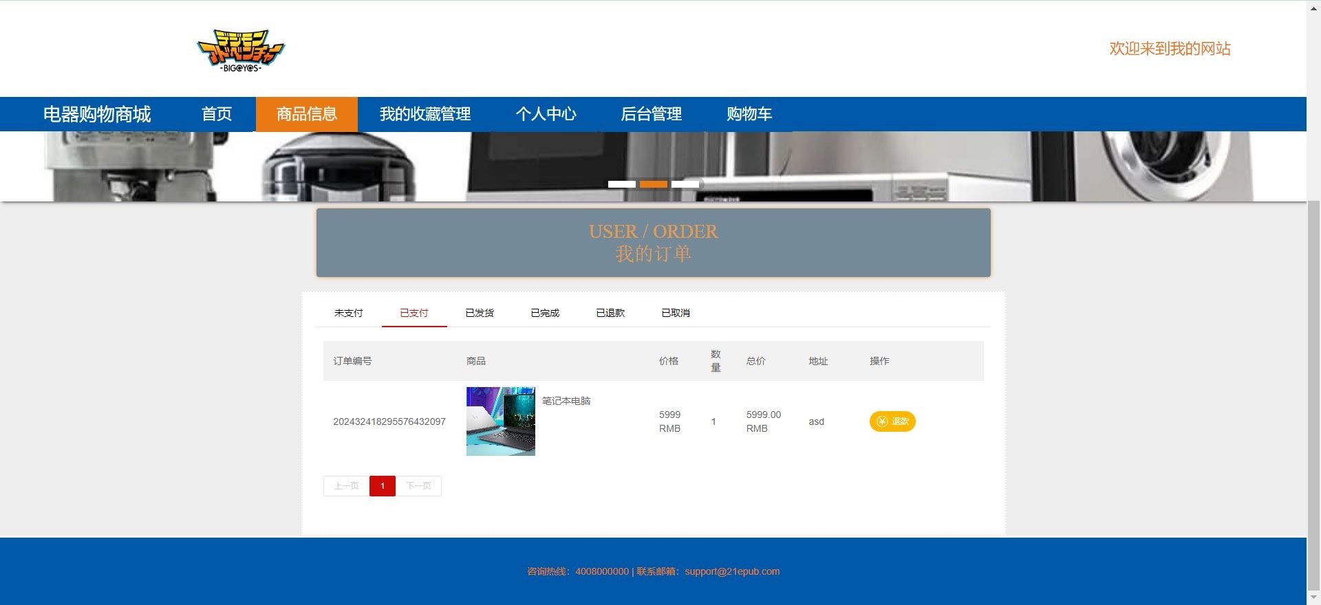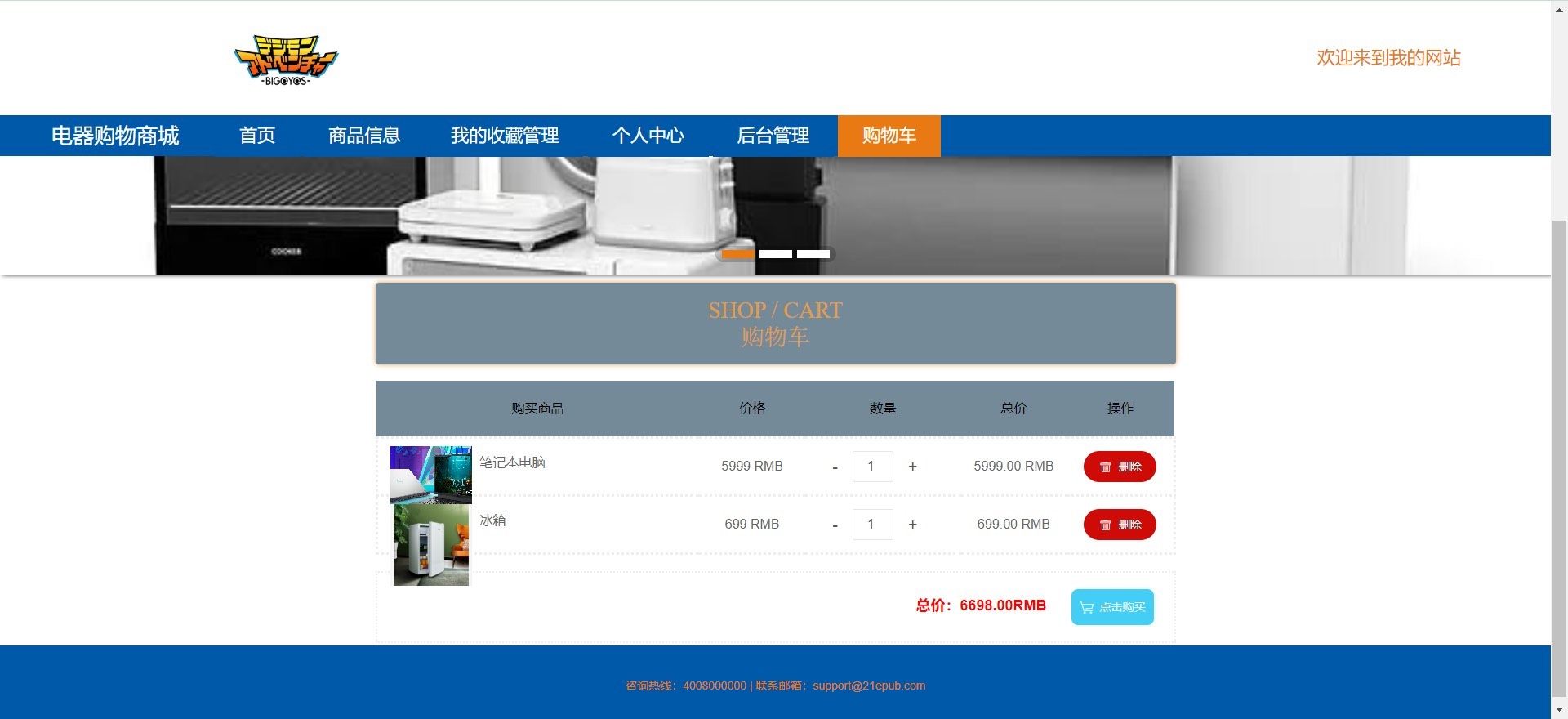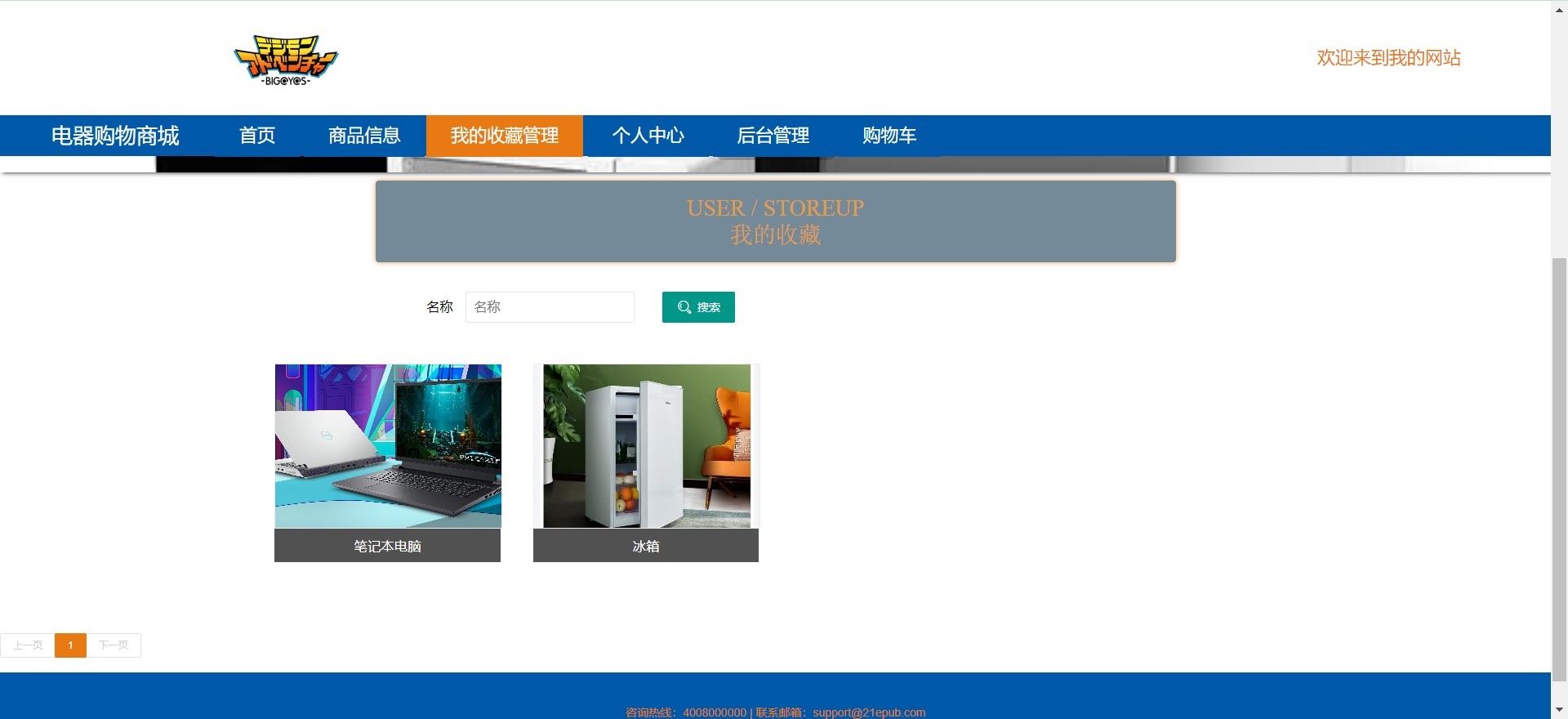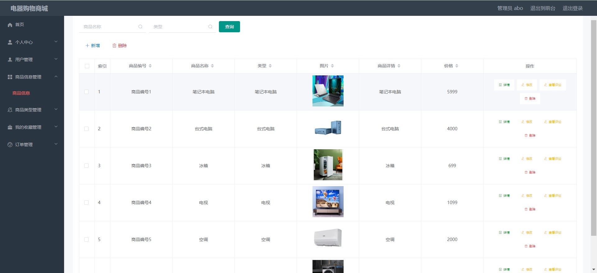 - **前台门户**:集成首页推荐、商品分类检索、收藏夹快捷入口、个人中心跳转、后台登录入口及车实时结算模块,全面提升终端用户体验与后台运营效率。