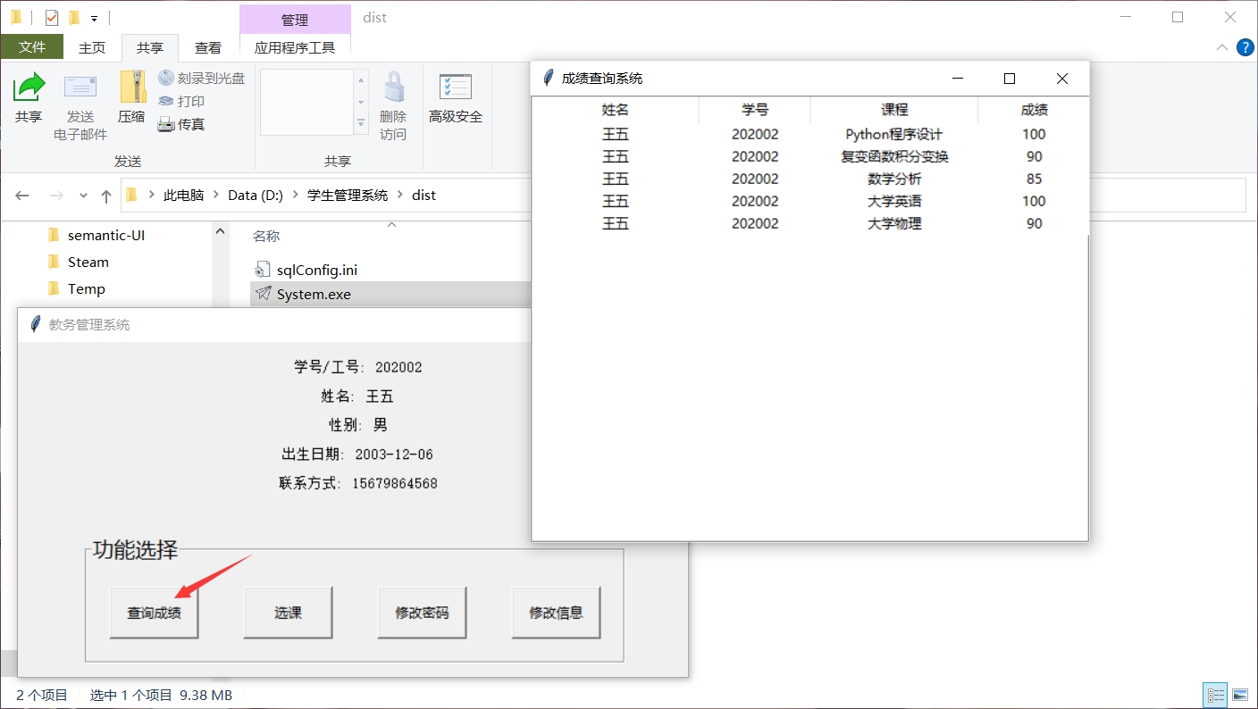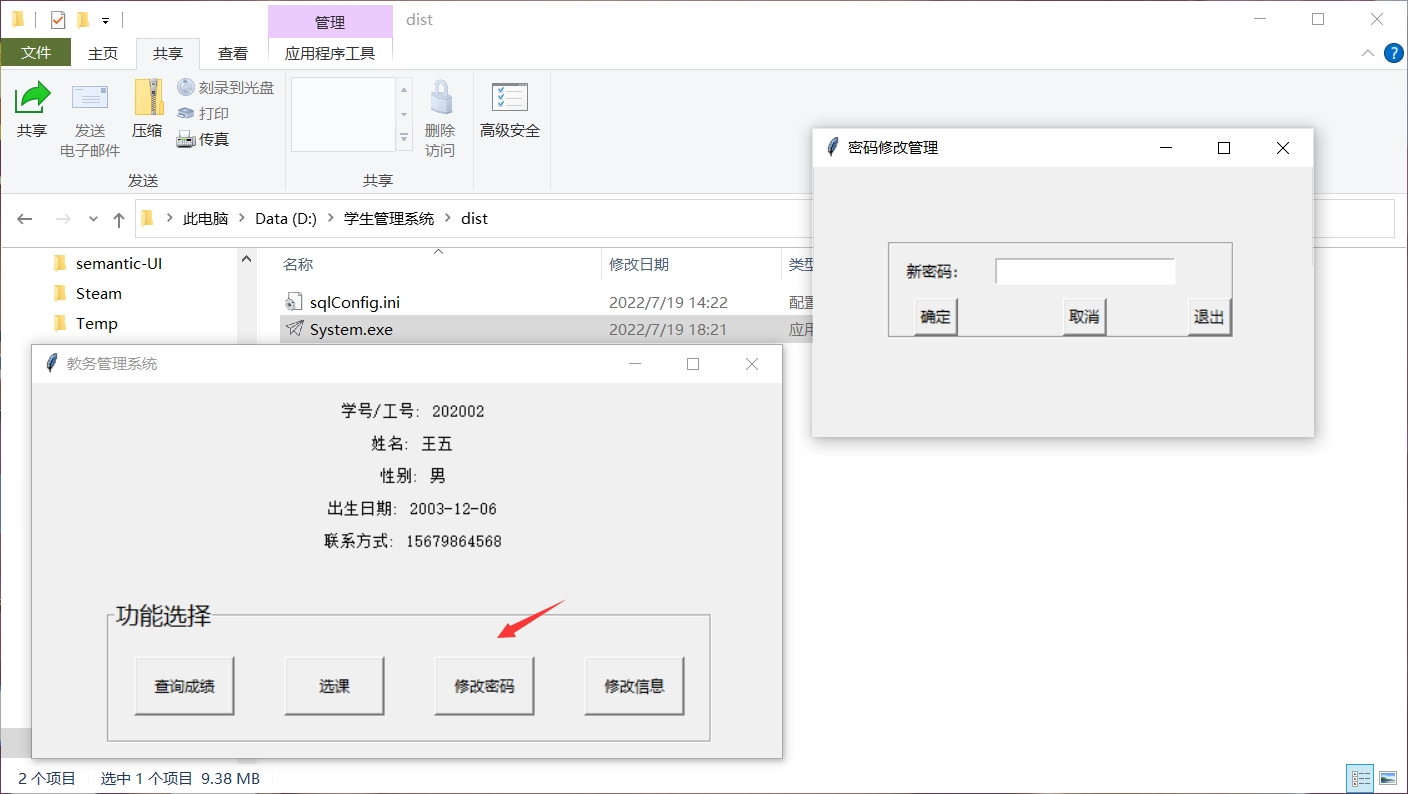为了让使用者更方便体验系统功能,代码已打包为exe可执行程序,无需配置环境,双击即可运行。