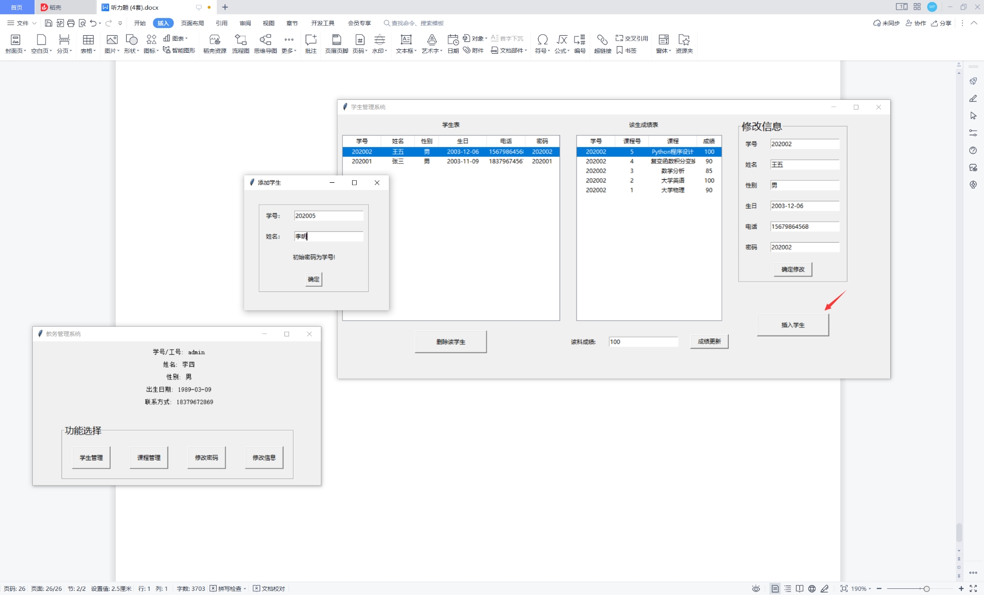 本项目是一款基于Python开发的教务信息管理系统,集成了图形化操作界面(GUI)和MySQL数据库,适用于学生、教师及管理员角色的日常教学管理需求。