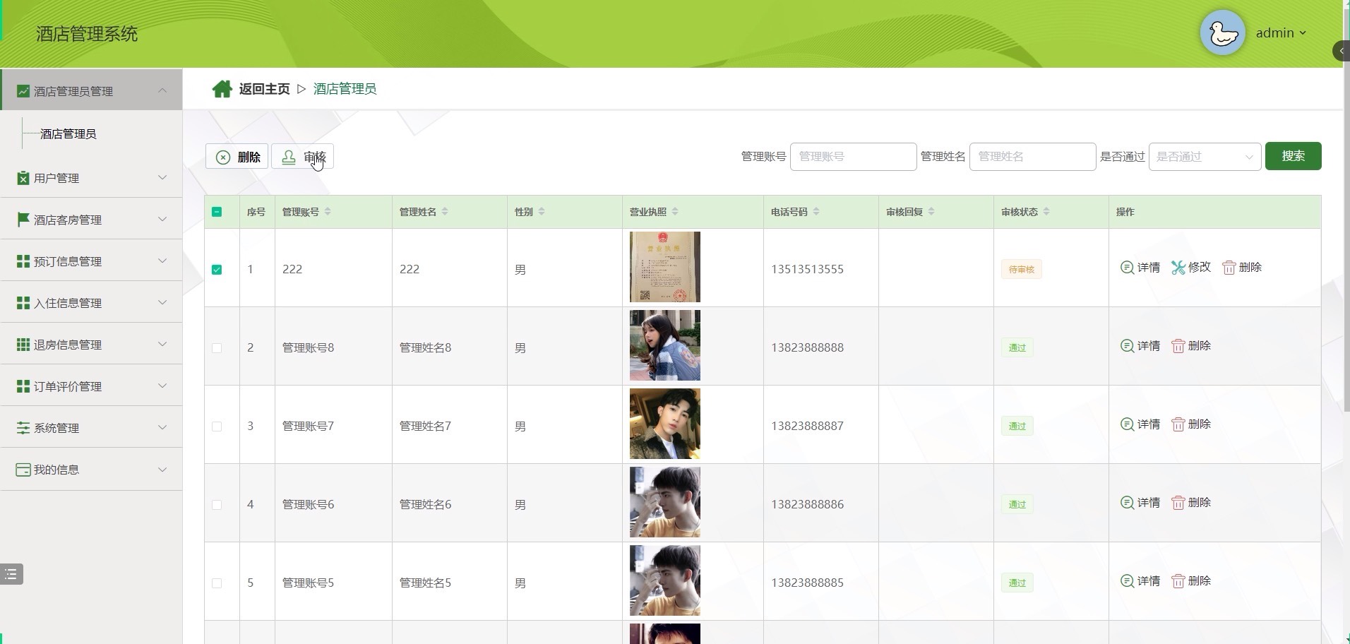 管理员可通过后台动态调整房间状态、定价策略和库存数量,实现精细化运营。
