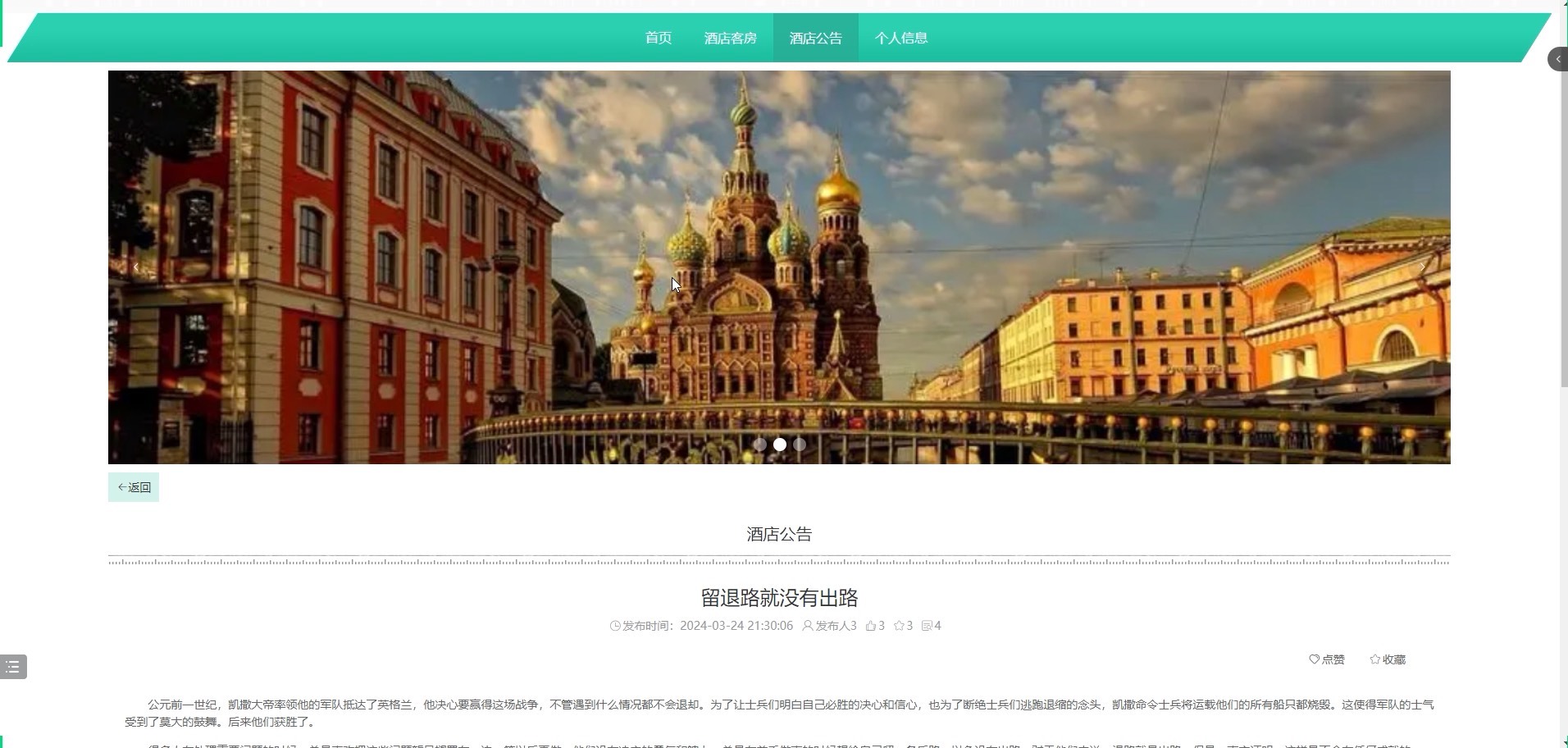 本系统采用Java语言开发,后端基于SpringBoot框架实现高效稳定的服务支撑,前端使用Vue.js构建响应式用户界面,打造高性能、易扩展的全栈酒店管理解决方案。