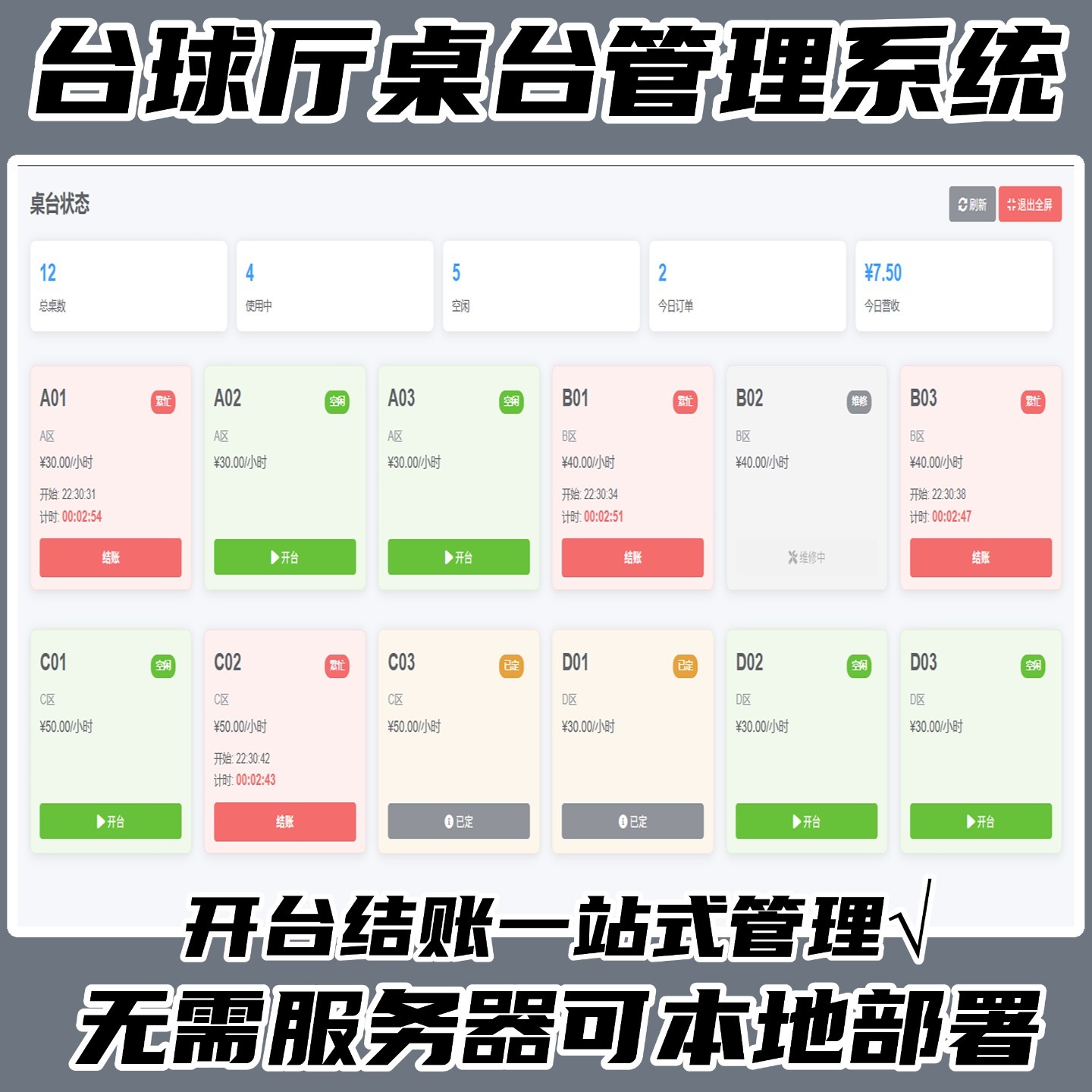 这款无需公网服务器、支持本地部署的PHP台球厅管理系统源码,是中小型台球场所理想的管理工具。