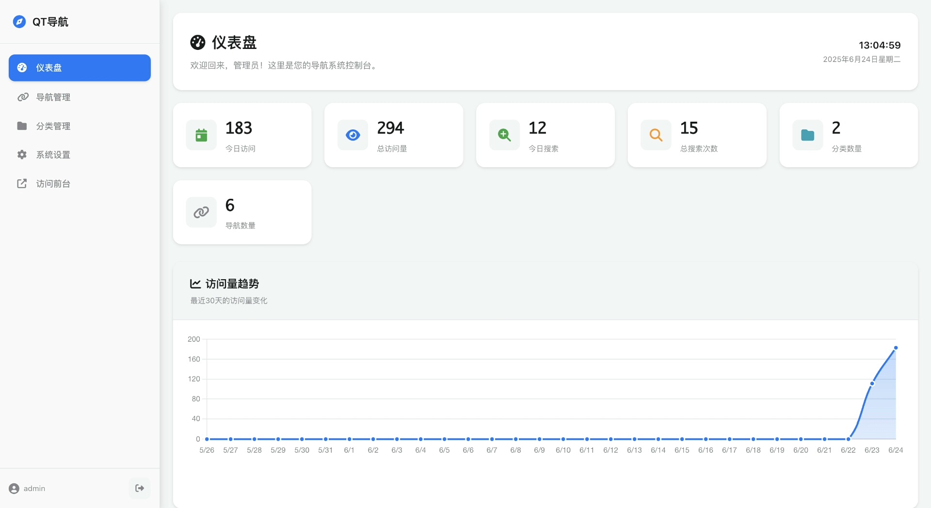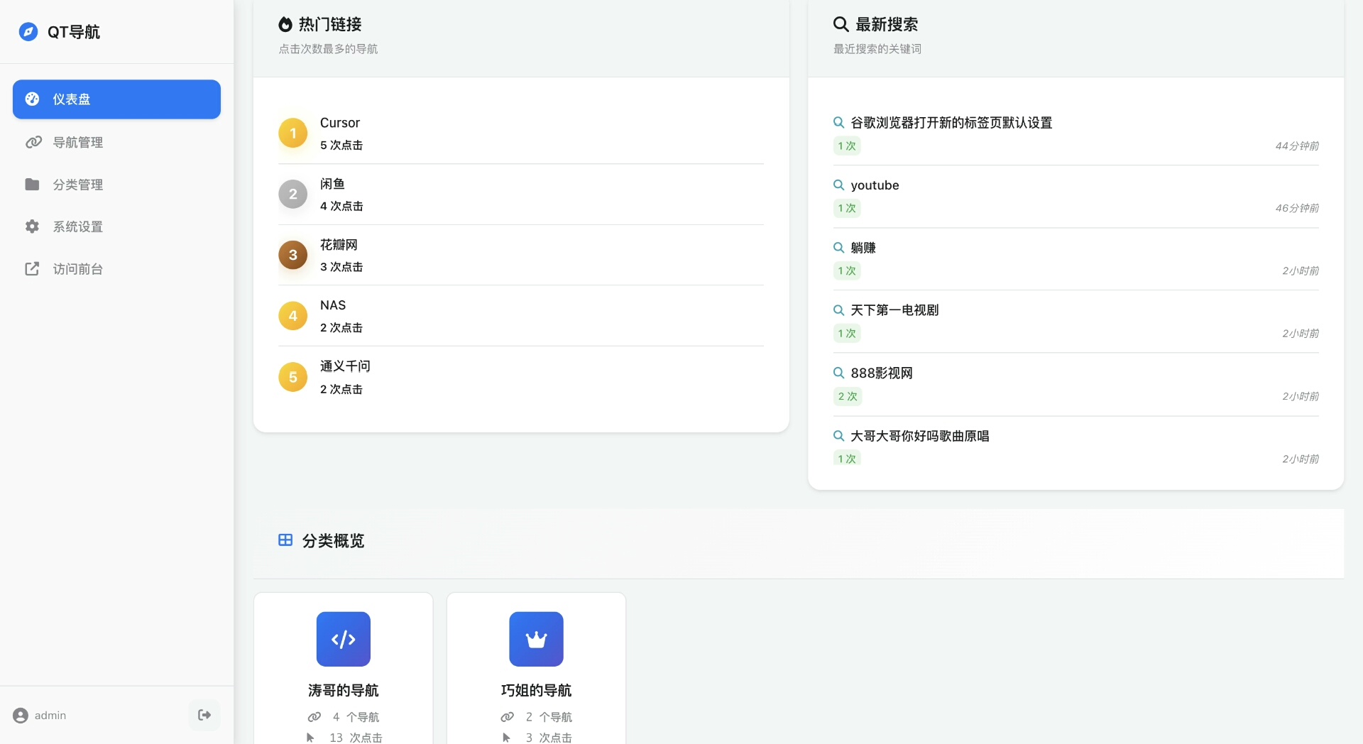 系统内置访问统计模块,可记录每日访客数据;同时支持搜索框使用频率统计,帮助运营者了解用户偏好,优化导航内容布局,提升站点实用性与转化率。