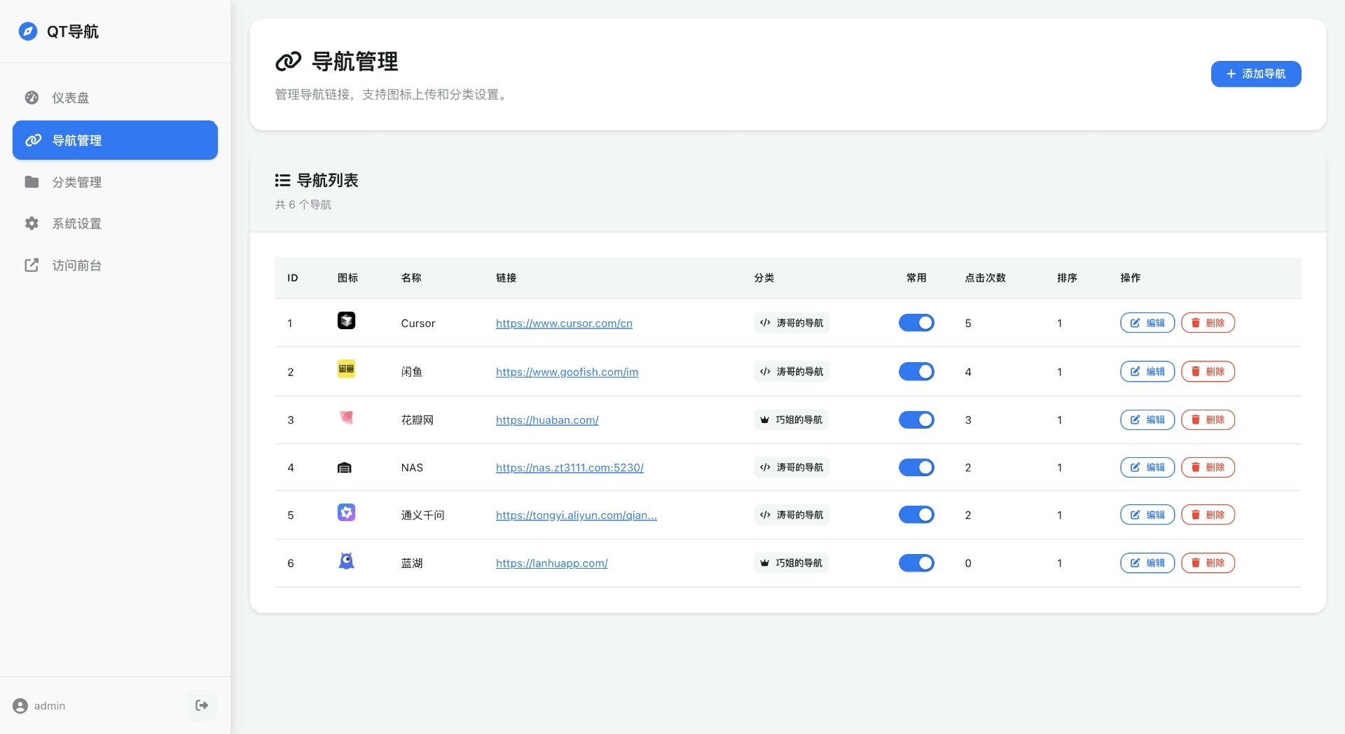 系统配备功能完善的后台管理界面,用户可轻松添加、编辑或删除导航分类与网站链接,无需手动修改代码。