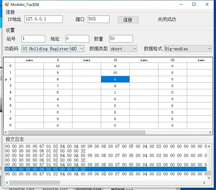 该工具以Tcp-Client模式运行,能够主动连接Modbus TCP从站设备并实时接收其返回的数据信息。