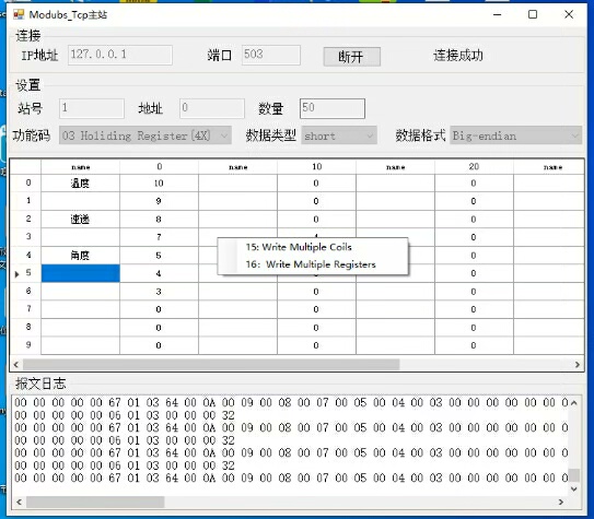 工具全面支持常用的Modbus功能码操作,包括读取和写入指令。