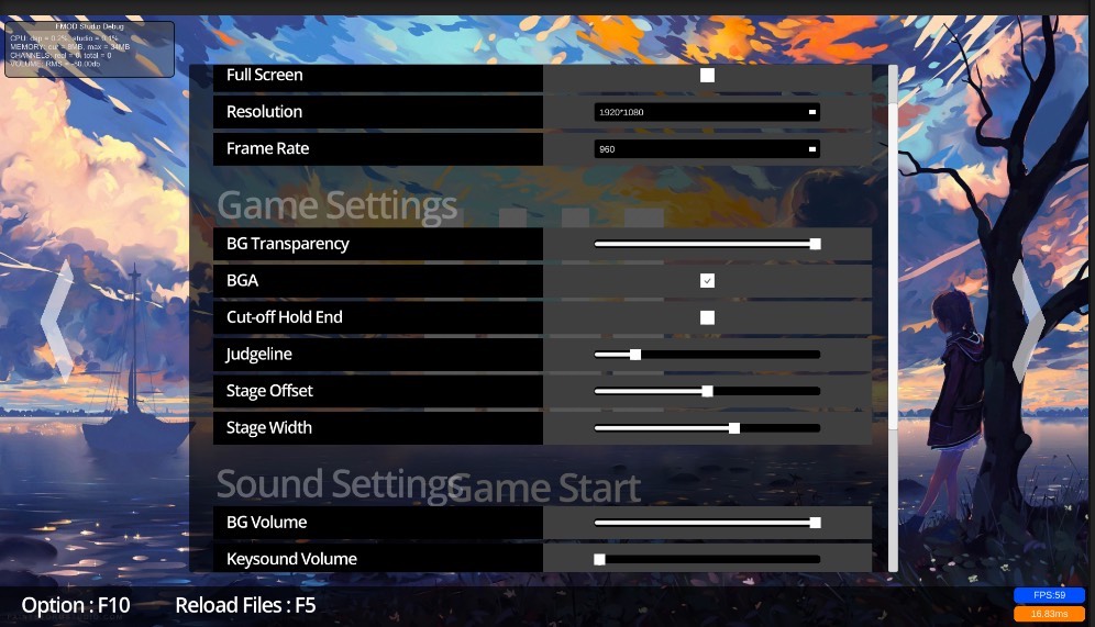 同时提供游戏设置界面,支持音效调节、判定精度设置、自动游戏模式等功能,提升用户体验。