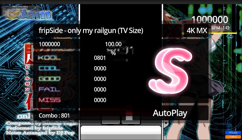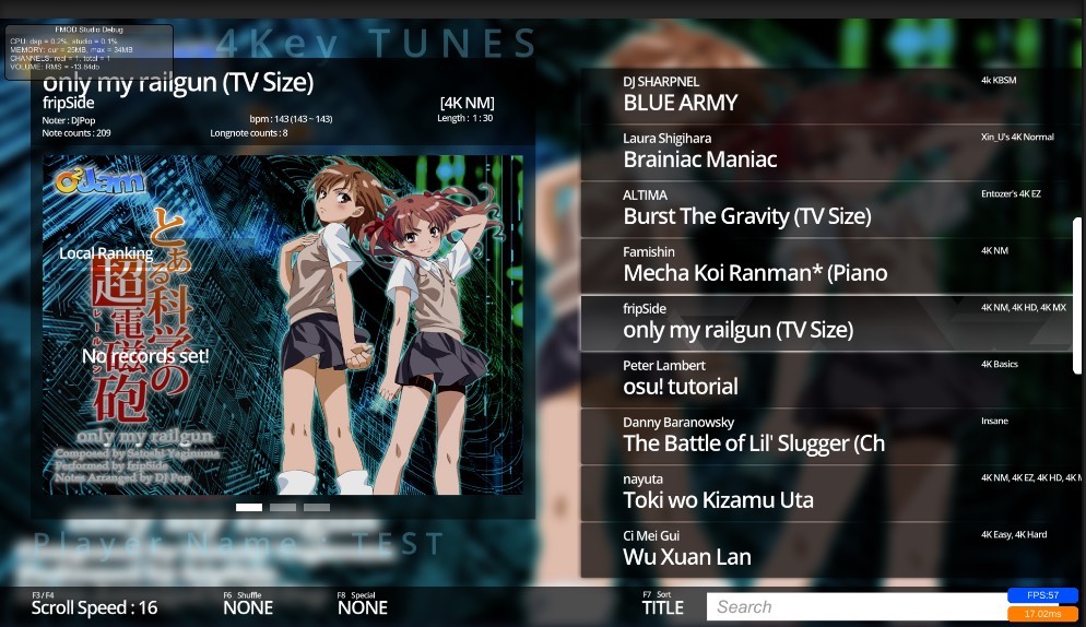 通过解析.osu格式谱面数据,自动匹配节奏点与下落轨迹,极大丰富游戏内容,降低内容制作成本。