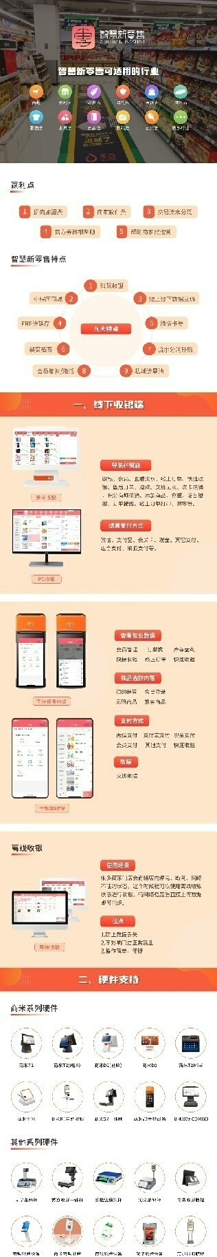 系统集成了强大的收银模块,支持PC端、安卓设备、自助终端、称重机等多种智能硬件接入,适用于商超、便利店、生鲜水果、鲜花烘焙、服装百货等各类零售场景。