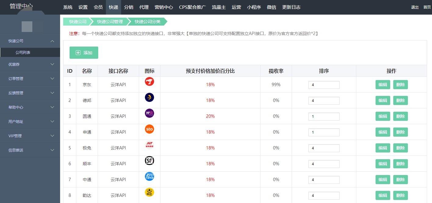 虽未深入测试所有外部平台接口,但预留标准API接口,方便开发者自行扩展接入更多快递服务商。