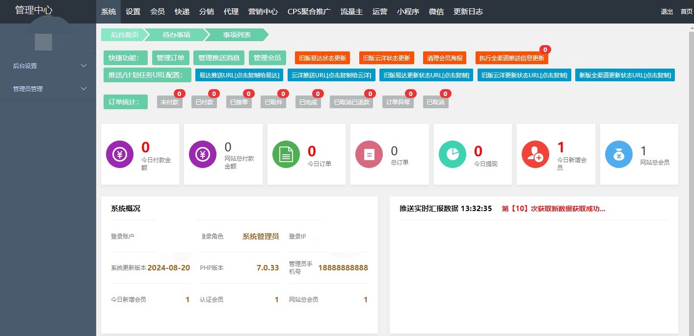 系统原生集成CPS推广机制,用户可通过订单或注册链接佣金收益。
