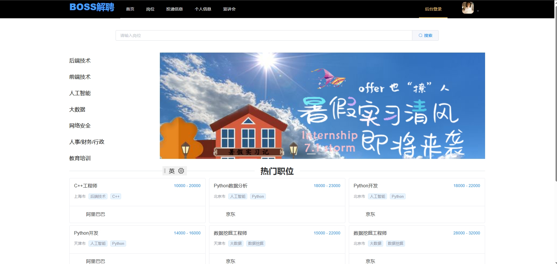 系统提供热门职位推荐功能,帮助学生快速发现高关注度的就业机会。