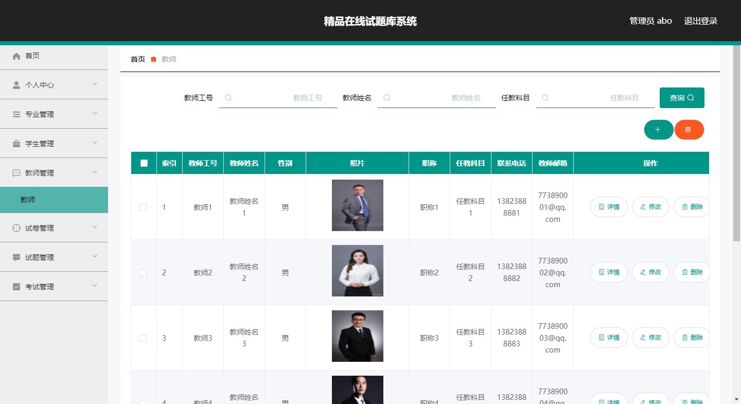 系统覆盖从试题录入、试卷生成、在线考试到成绩分析的完整教学测评流程,助力教育机构实现数字化转型与高效管理。