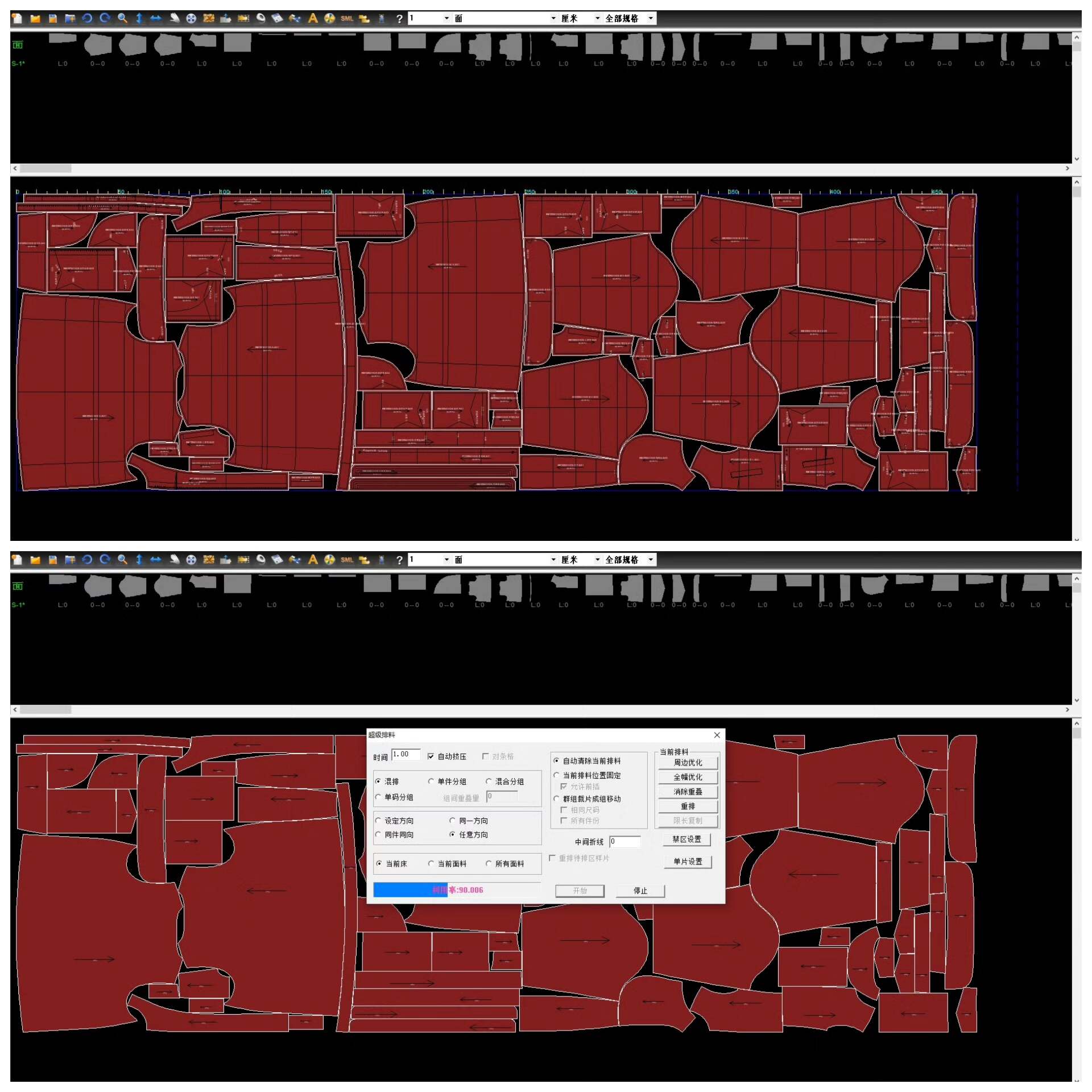 支持从单个版型快速扩展为团体系列版型,并在1到5分钟内完成最优排料方案,显著提升材料利用率与生产节奏。