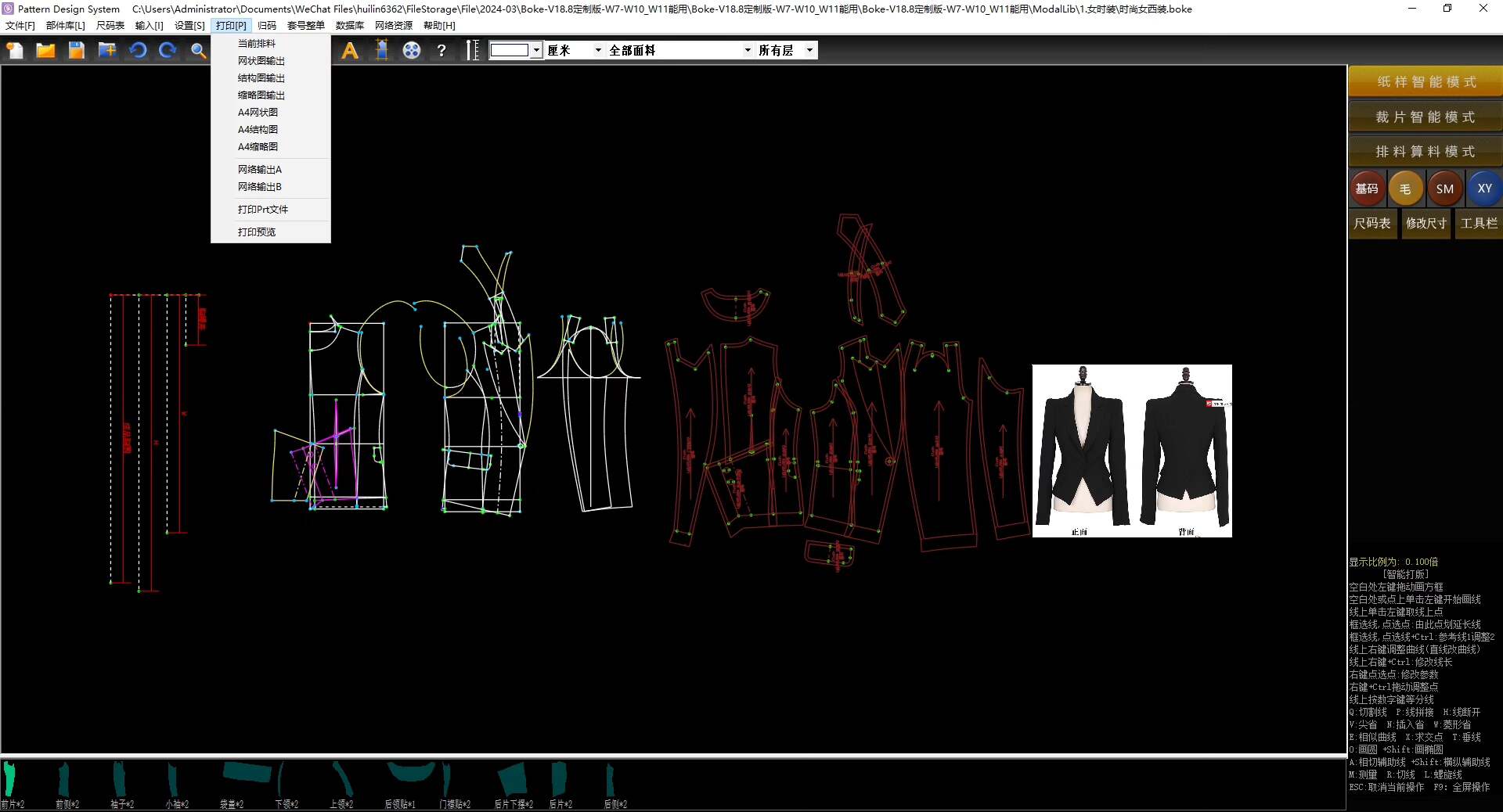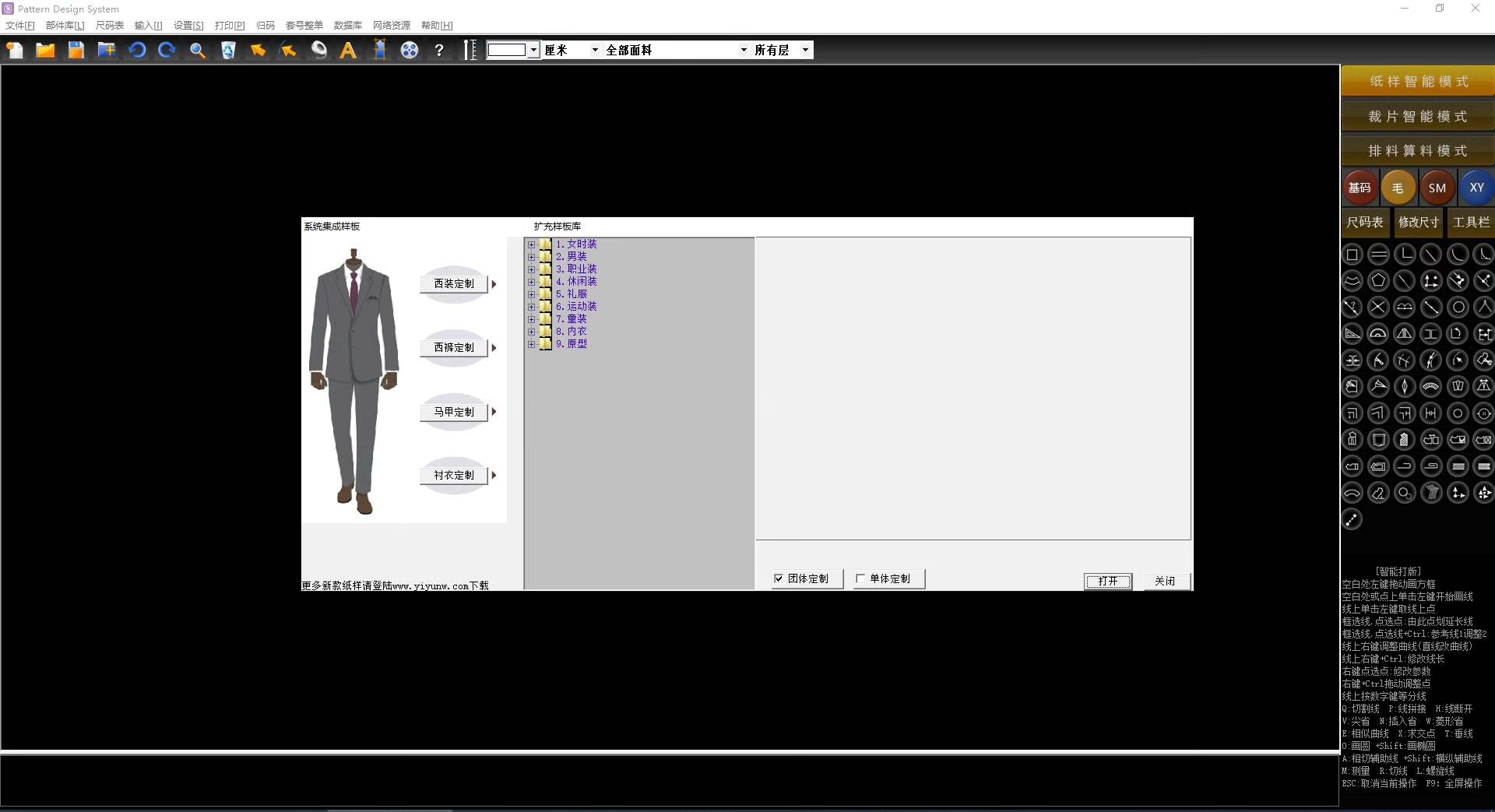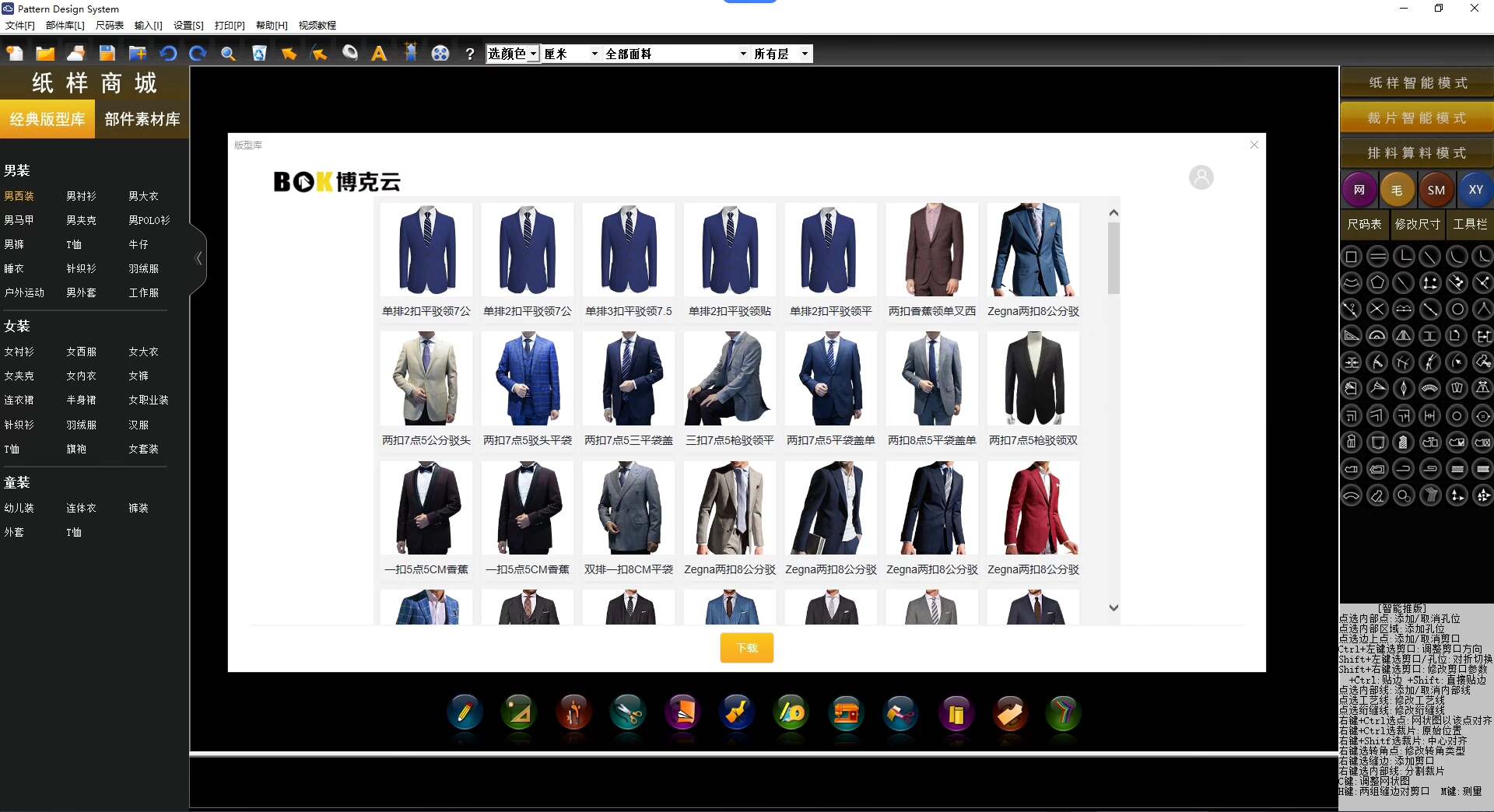 内置丰富的样板库,涵盖西装、衬衫、裤子、连衣裙、夹克、马甲等多种款式,支持直接调用与修改。
