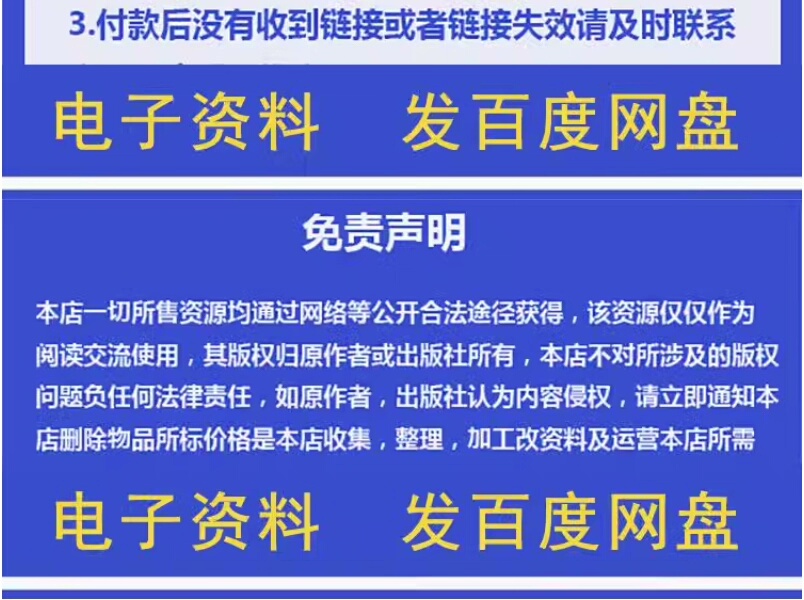 本产品为虚拟电子资料,购买后通过百度网盘链接发送,永久有效,不支持退换。