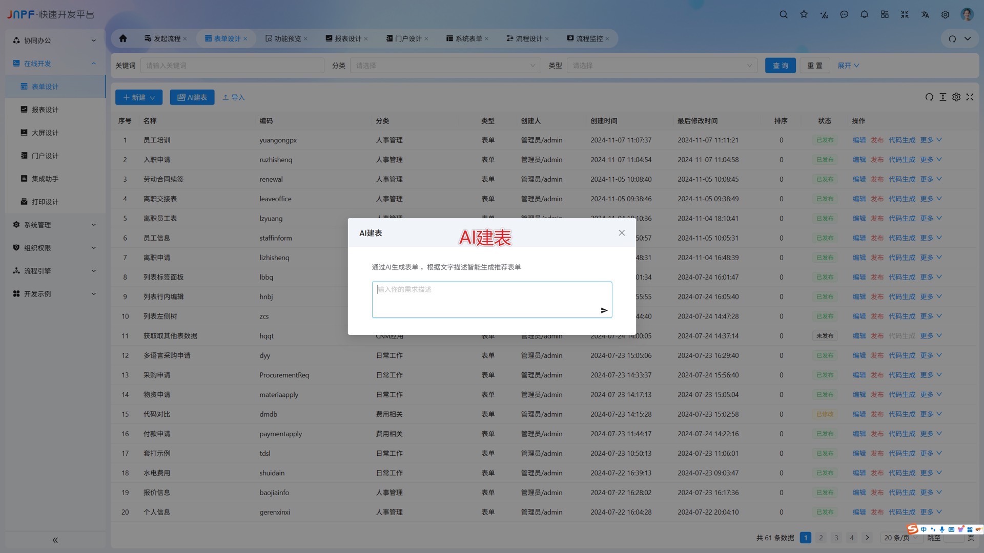 JNPF 6.0引入AI技术,新增AI建表和AI助手功能,可根据自然语言描述自动生成数据库结构和基础代码。