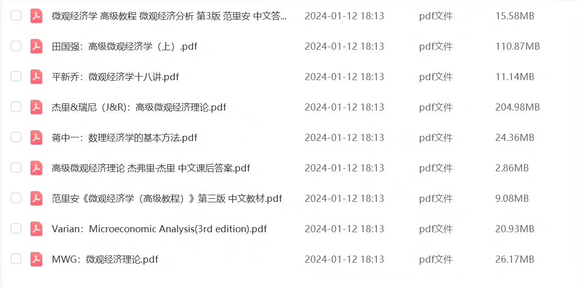 后将通过百度网盘发送全套电子资料,包括高清PDF版笔记、结构化思维导图,以及《Jehle & Reny》(J&R)和范里安《微观经济分析》的课后习题详细解答,覆盖主流高级微观教材重点难点。