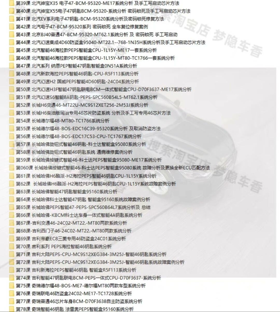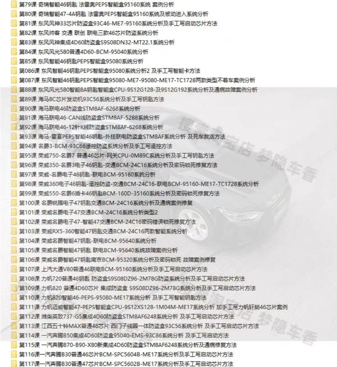 课程包含多品牌车型的智能钥匙匹配操作步骤,从基础原理讲解到实际案例演示,图文并茂、步骤清晰,即使是新手也能轻松上手,高效完成钥匙编程任务。