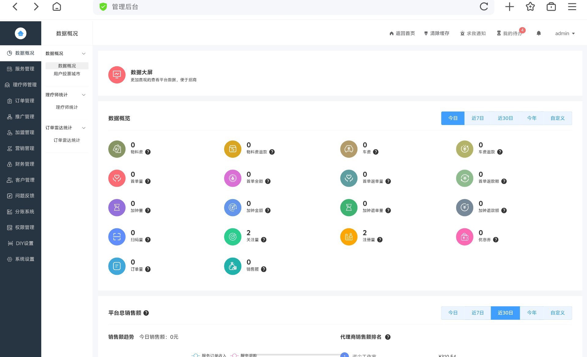 后台具备强大的DIY能力,支持页面布局、菜单结构自定义设置;内置分销加盟机制,支持经纪人、业务员及渠道商在线入驻。