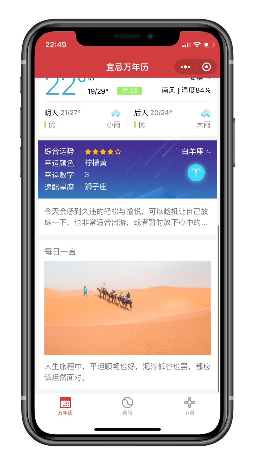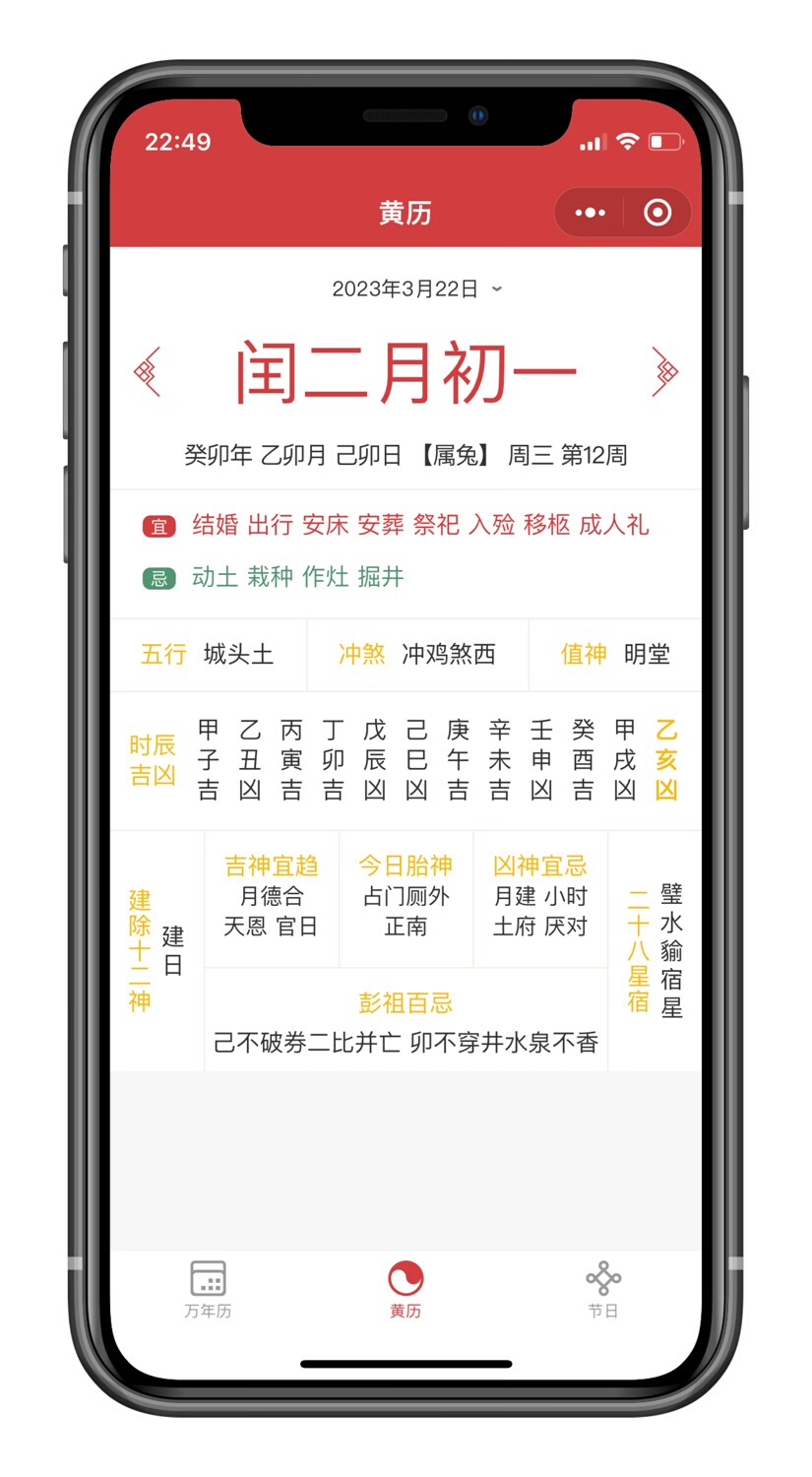 体验完整功能,请点击查看【宜忌万年历】小程序实际效果。