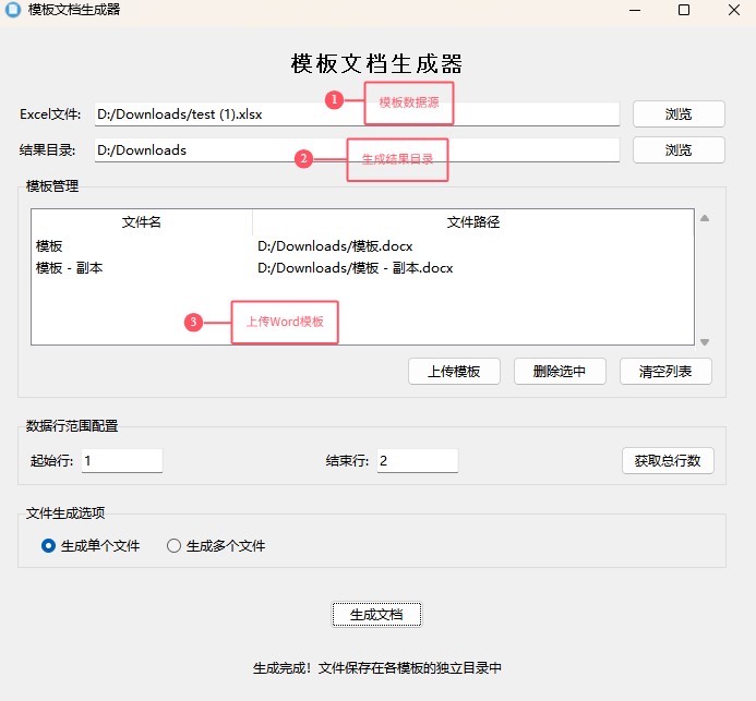告别手动复制粘贴!本工具专为高效办公设计,将Excel中的数据快速转化为格式规范的Word文件,适用于合同、协议、报告等多种文档类型,真正实现一键批量生成。